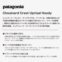 シュイナード・クレスト・アップライザル・フーディは、内側が起毛仕上げで自然な伸縮性を備えたリサイクル素材100%のニット・フリースを使用。端切れと回収されたペットボトルを利用することによりバージン原料への依存を削減。フェアトレード・サーティファイドの工場で製造