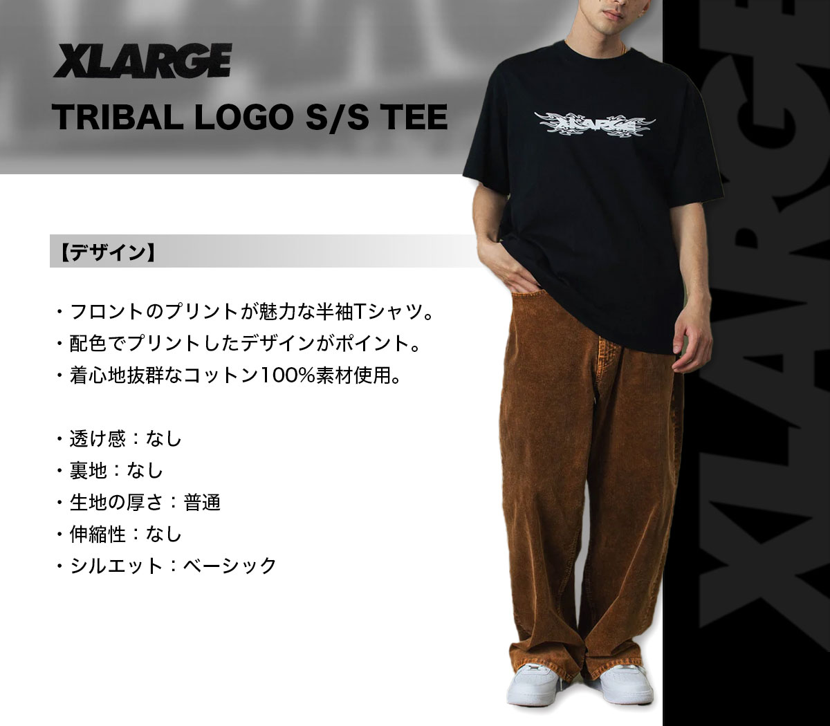 【国内正規取扱店】 XLARGE エクストララージ TRIBAL LOGO S/S TEE メンズ 半袖Tシャツ 【ディテール】 ・フロントのプリントが魅力な半袖Tシャツ。 ・配色でプリントしたデザインがポイント。 ・着心地抜群なコットン100%素材使用。 ・透け感:なし ・裏地:なし ・生地の厚さ:普通 ・伸縮性:なし ・シルエット:ベーシック ◆素材:綿100% ◆カラー:グレー(11)/ブラック(10) ◆サイズ:L