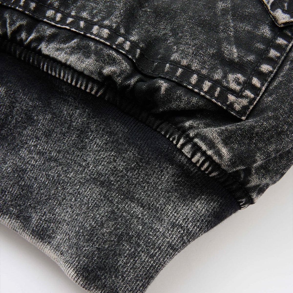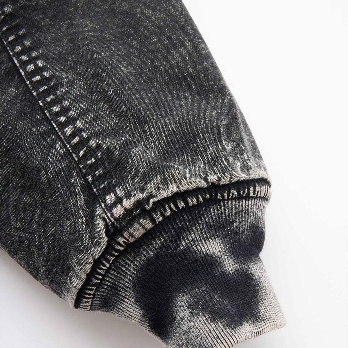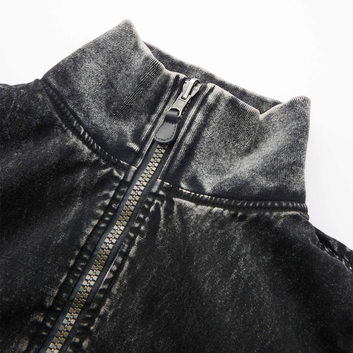 A面は加工感たっぷりで、トレンドライクな印象に。 B面はシンプルで着まわしやすい、落ち着いた加工感。 B面のみ胸元にミルズロゴのワンポイント刺繍と、背面襟元に織りネーム付き。 スタイリングに合わせてがらっと雰囲気を変えられるデザインが魅力。 襟リブが長めのため、襟を折り返しての着用もおすすめ。 コンパクトなトップスとボリューム感のあるボトムスに好相性。