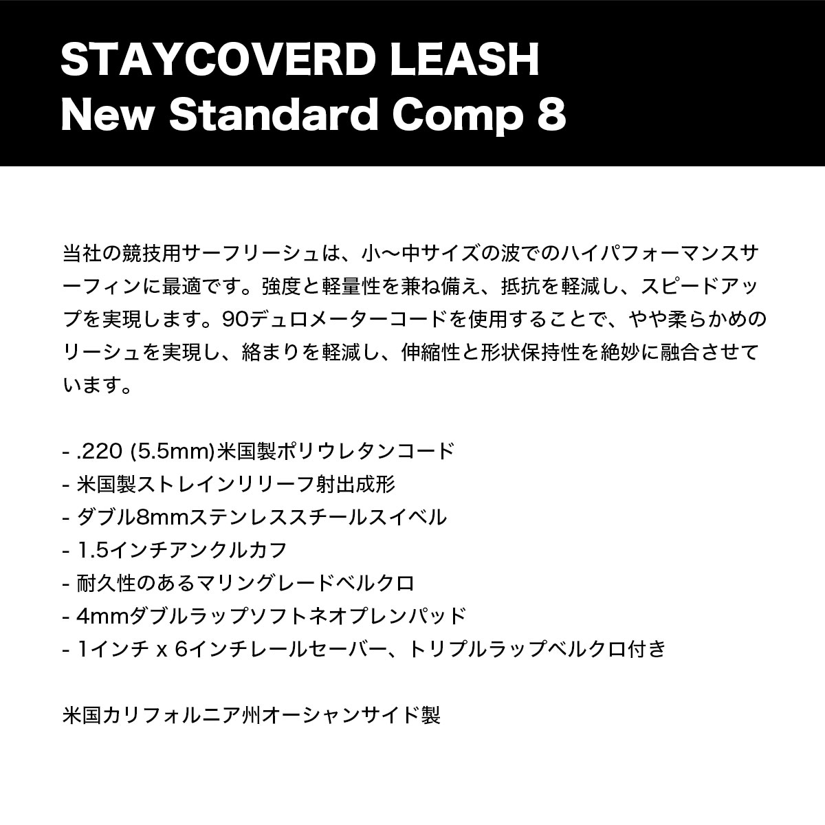 【検索キーワード】ステイカバード リーシュコード コンプ8 リーシュ 8フィート 8ft サーフボード 足首用 サーフィン 全3色 USA製 人気ブランド STAYCOVERD LEASH【COMP NEW 8】おすすめ オススメ オシャレ シンプル カジュアル かっこいい 定番 アウトドア マリンスポーツ プレゼント 静岡県 静波 ジャックオーシャンスポーツ サーフボード スケートボード スノー アパレル patagonia他 各種ブランド 正規取扱店