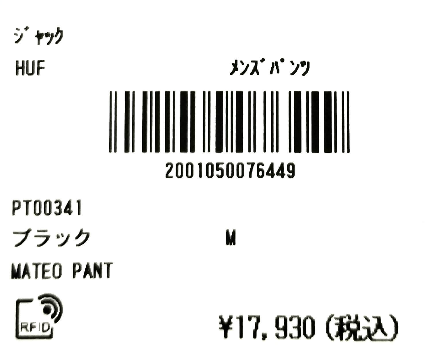 HUF ハフ イージーパンツ メンズ レディース 太め ルーズ ズボン ウエストゴム スケボー スケートパンツ ロゴ ブラック 黒 スケーター 人気 ブランド | MATEO PANT【PT00341】