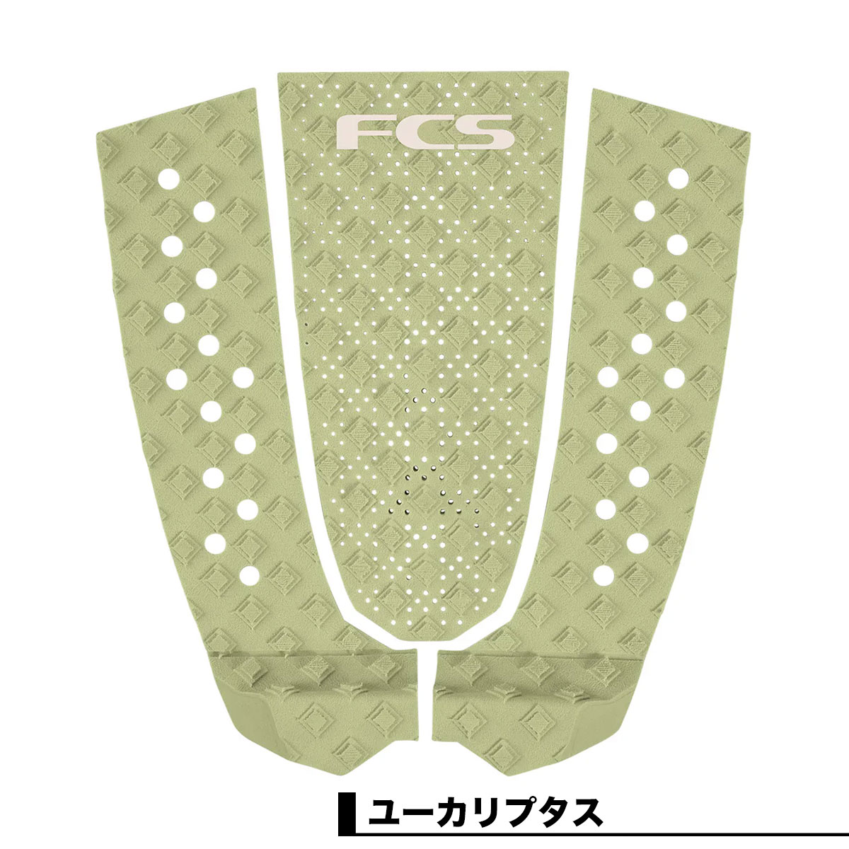 【国内正規取扱店】 FCS|エフシーエス FCS T-3 Eco Traction 【T-3 ECO】 ポピュラーなFCS T-3トラクションパットに穀物由来のバイオ素材から創られたサスティナビリティを伴う、期待のパフォーマンスを裏切らないパッドが追加されました。 サトウキビをベースとしたバイオフォームから作られた人気のFCS T-3トラクションパッドは、 3ピースグリップに期待される信頼の高い性能をそのままに、サスティナビリティな仕様になりました。 ■カラー: ・エクリプス ・ユーカリプタス ・タイダルティール