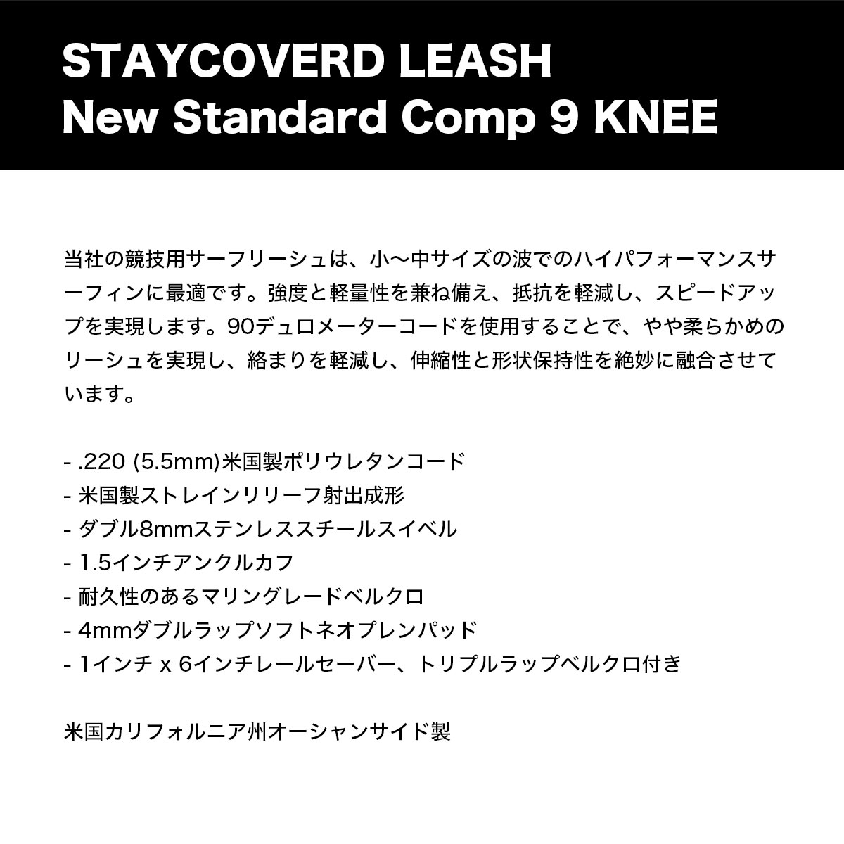【検索キーワード】ステイカバード リーシュコード9 コンプ リーシュ 9フィート 9ft サーフボード 膝用 ひざ サーフィン 全2色 USA製 人気ブランド STAYCOVERD【COMP-KNEE NEW】おすすめ オススメ オシャレ シンプル カジュアル かっこいい 定番 アウトドア マリンスポーツ プレゼント 静岡県 静波 ジャックオーシャンスポーツ サーフボード スケートボード スノー アパレル patagonia他 各種ブランド 正規取扱店