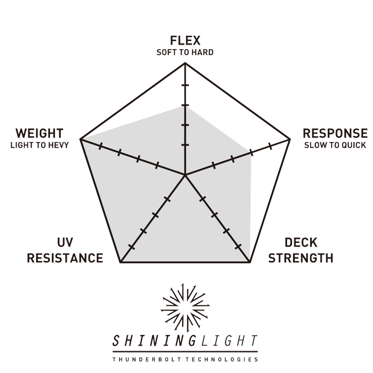 35mmCARBON STRINGER と硬すぎず凹みずらいオーバルパッチを採用。全面をPVCでダブルサンドイッチした構造によりサーフボードに必要な粘りの強い弾性力を生み出します。クロスに残るレジンの残存量をオリジナルエポキシレジンにより最適化し3次元曲線を刷新。UVカット塗料を施し耐光性と軽量に特化したモデル。