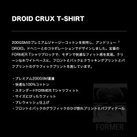 200GSMのプレミアムジャージーコットンを使用し、アンドリュー「DROID」ドヘニーとのコラボレーションでデザインしました。定番のFORMER Tシャツブロックで、モダンで快適なフィット感を実現。クリーンなホワイトベースに、フロントとバックにクラッキングプリントとパフプリントのグラフィックプリントを施しています。