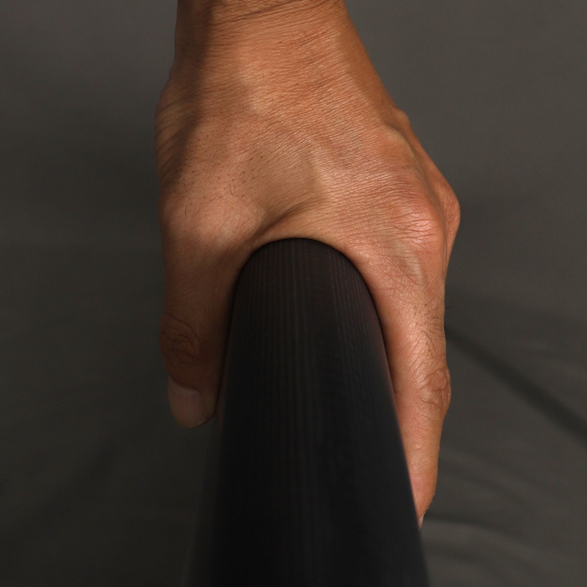 コーンケーブ エントリーにロールV型、前足の下にシングルコンケーブ、フィンを通るダブルコンケーブ、そしてテールアウトのV型ダブル。