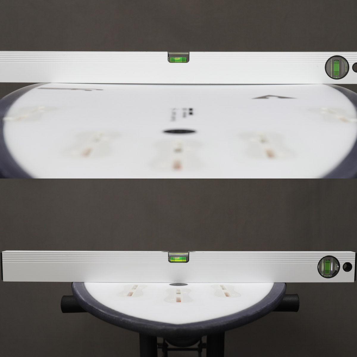 エントリーは弱く前足あたりまでフラット気味、センターからテールにかけてスムーズなテールロッカーあり
