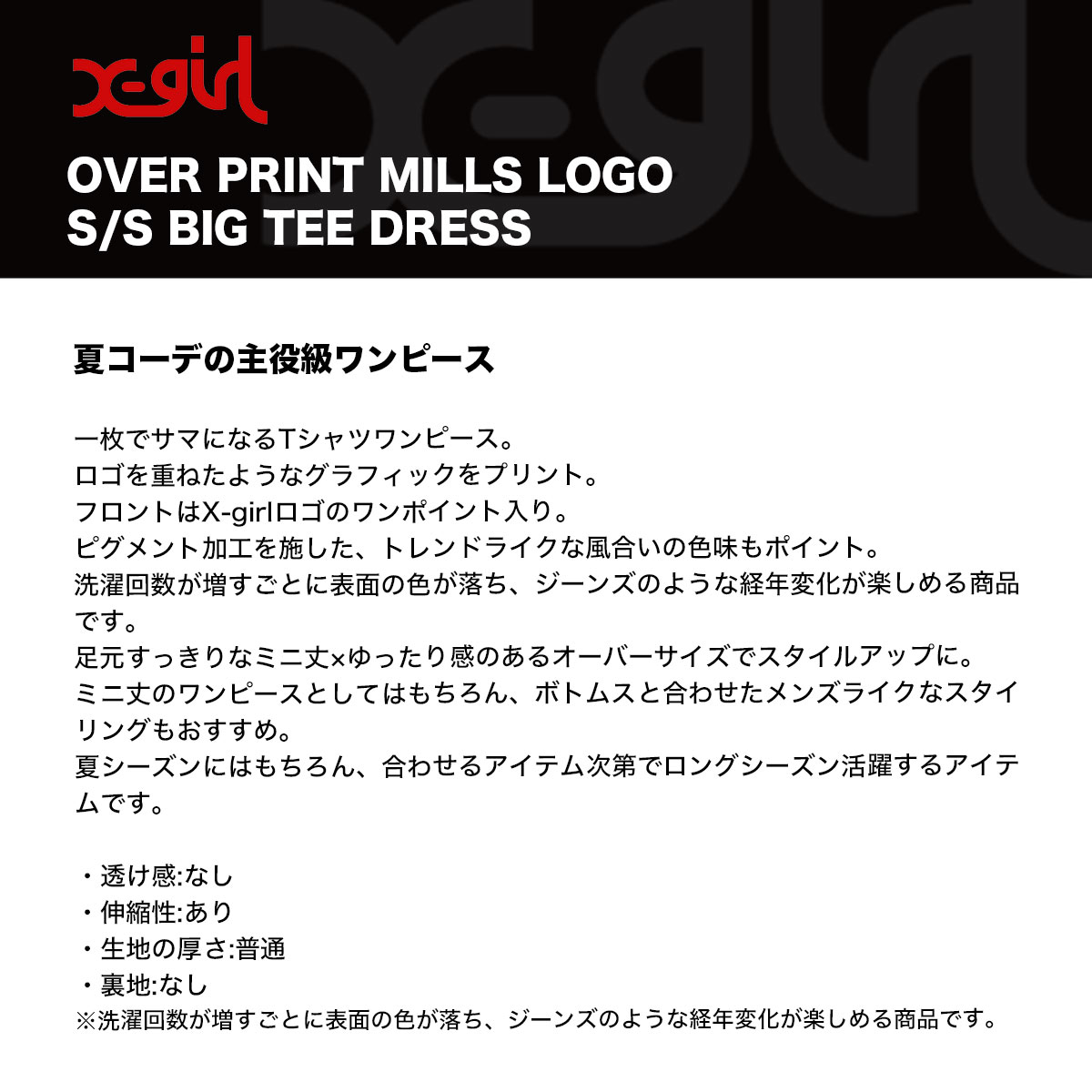 【検索キーワード】エックスガール ワンピース Tシャツワンピ オーバーサイズ ロゴ シンプル 全2色 M ストリート人気ブランド X-GIRL 新作 | OVER PRINT MILLS LOGO S/S BIG TEE DRESS【105253041006】かわいい おしゃれ プレゼント 正規取扱い店【XGIRL】静岡県 静波 ジャックオーシャンスポーツ サーフボード スケートボード スノー アパレル 各種ブランド 正規取扱店 2025秋