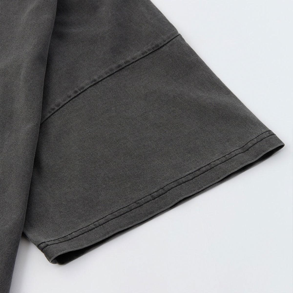 ピグメント加工を施した、トレンドライクな風合いの色味もポイント。 洗濯回数が増すごとに表面の色が落ち、ジーンズのような経年変化が楽しめる商品です。 足元すっきりなミニ丈×ゆったり感のあるオーバーサイズでスタイルアップに。 ミニ丈のワンピースとしてはもちろん、ボトムスと合わせたメンズライクなスタイリングもおすすめ。