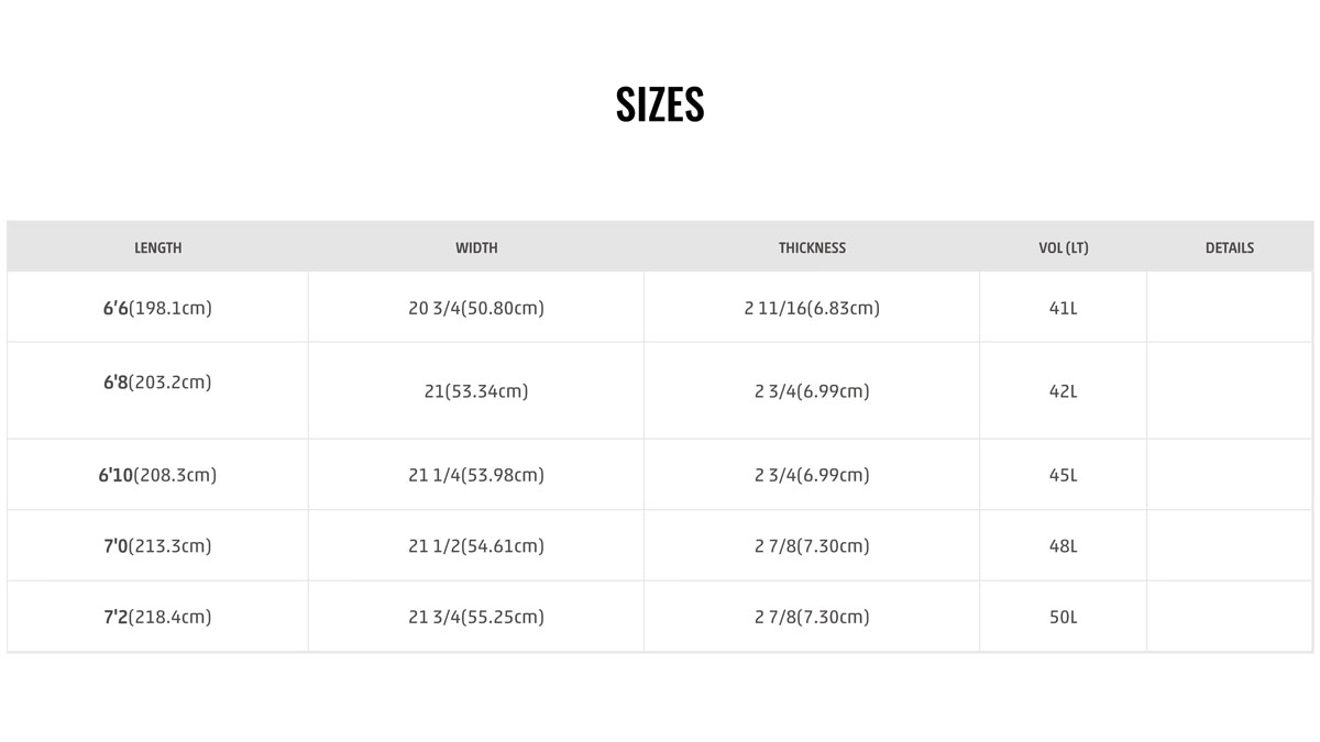 6'10 x 21 1/4 x 2 3/4【45L】 |