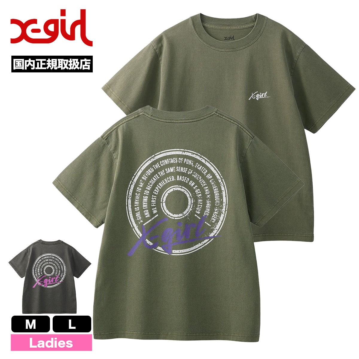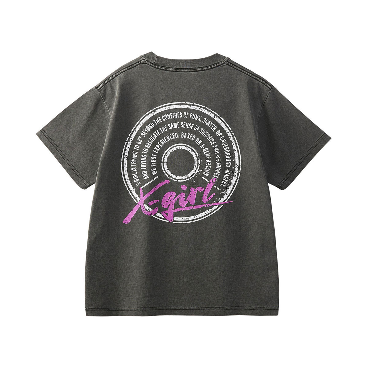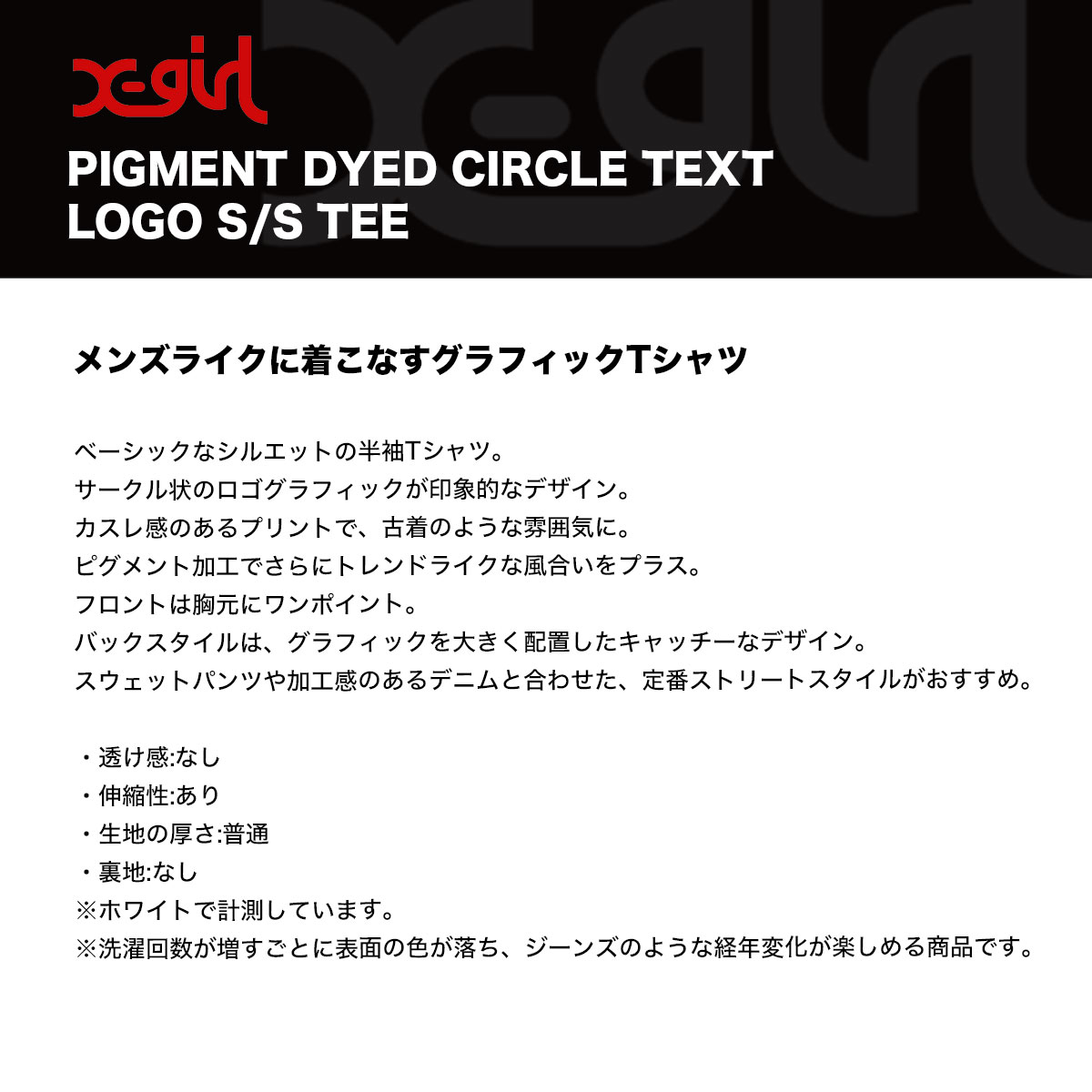 【検索キーワード】エックスガール レディース 半袖Tシャツ ピグメント加工 バックプリント ロゴ 全2色 M L ストリート人気ブランド X-GIRL 新作 | PIGMENT DYED CIRCLE TEXT LOGO S/S TEE【105253011016】かわいい おしゃれ プレゼント 正規取扱い店【XGIRL】静岡県 静波 ジャックオーシャンスポーツ サーフボード スケートボード スノー アパレル 各種ブランド 正規取扱店 2025秋