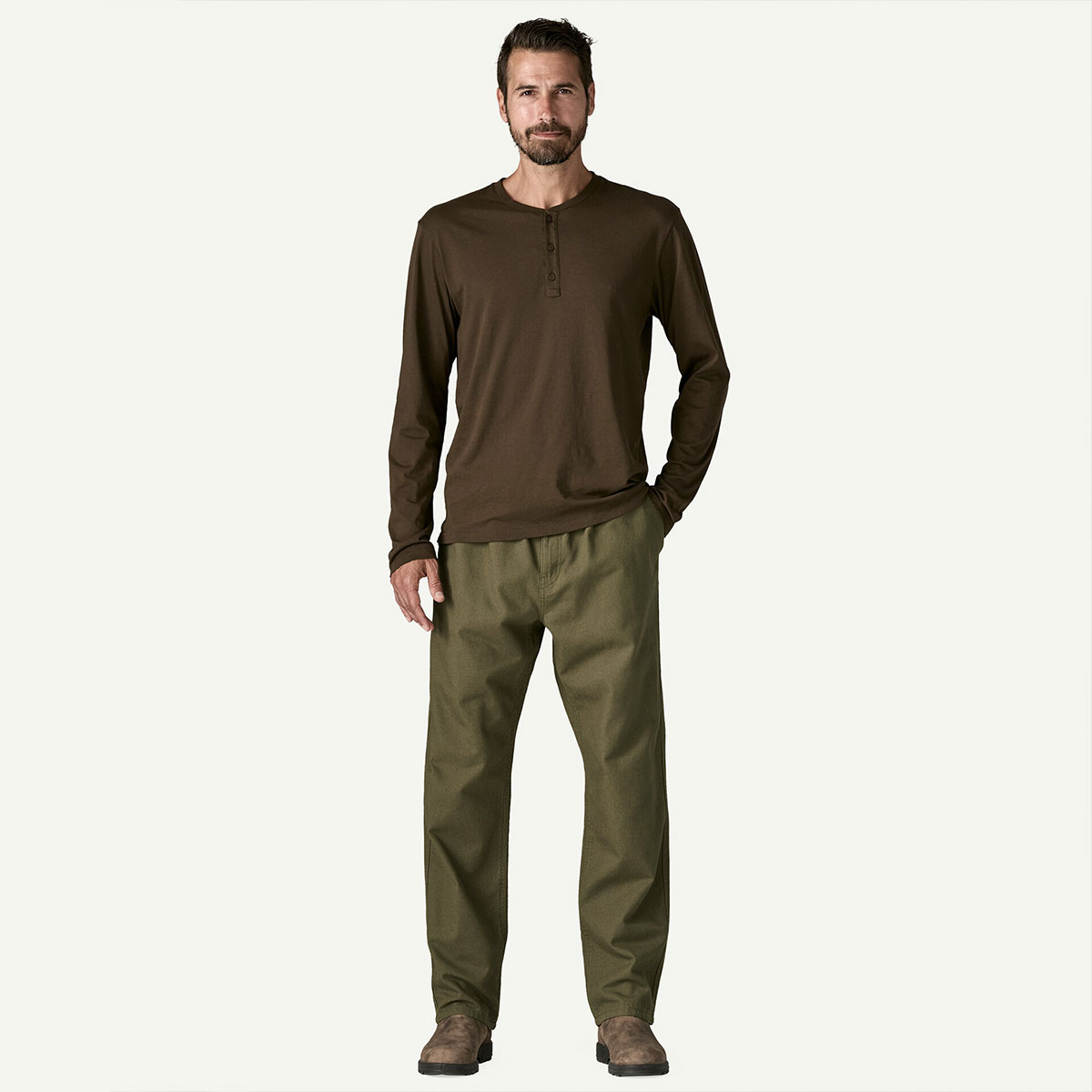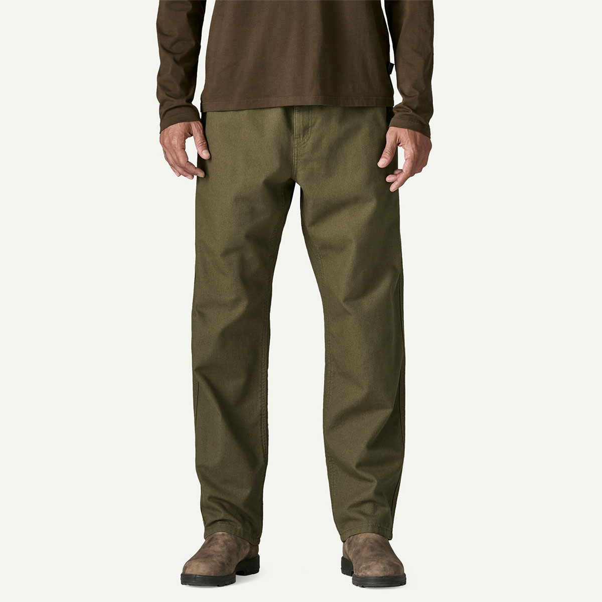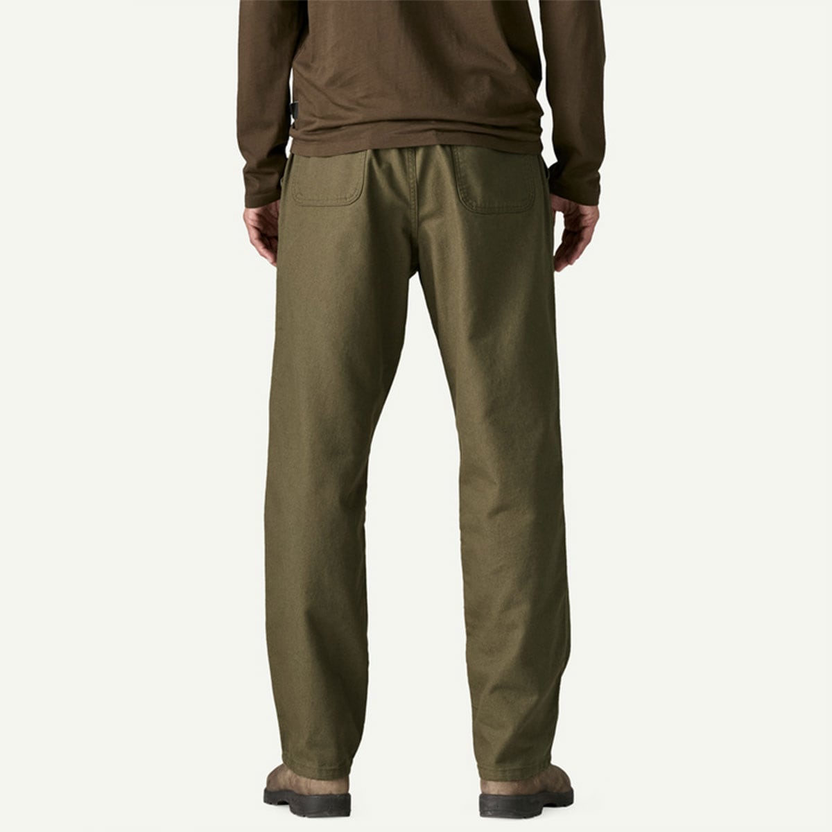 パタゴニアを象徴する頑丈なスタンドアップ製品と同じリジェネラティブ・オーガニック・サーティファイド・コットン100%のキャンバス素材を使用し、シンプルで長持ちする多用途型のデザイン。同系色のバータックと補強済みのパッチ型ポケットは耐久性を高め、調節可能なウェストバンドと動きやすい股下がギ・スタイルの日常着として多機能的なパンツ。フェアトレード・サーティファイドの工場で製造