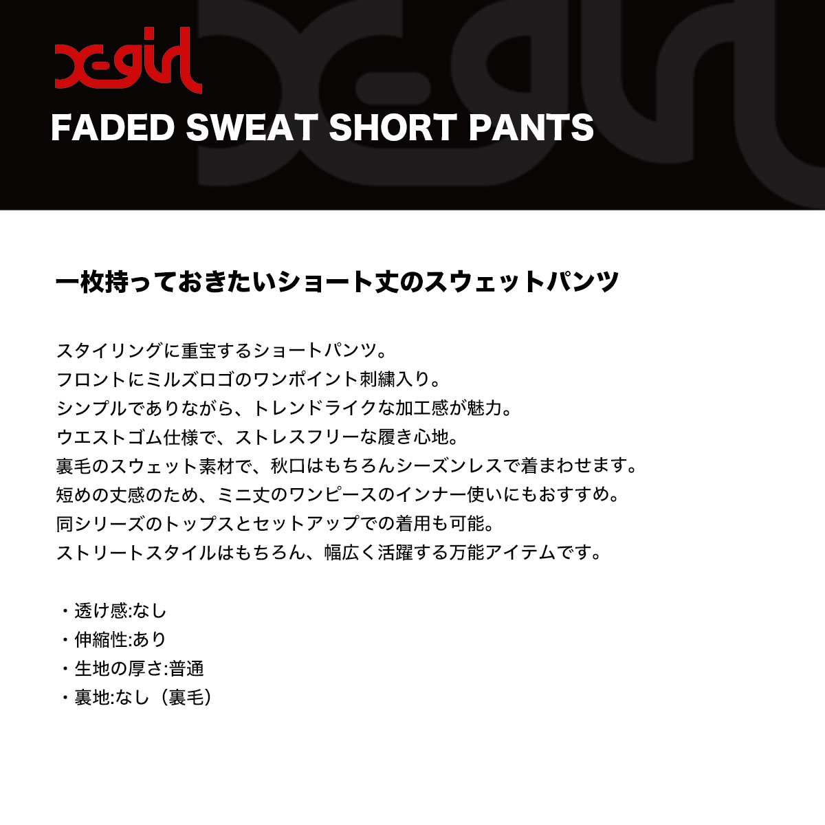 【検索キーワード】エックスガール レディース スウェットショートパンツ ロゴ 全2色 S M ダンス ストリート人気ブランド X-GIRL 新作 | FADED SWEAT SHORT PANTS【105253031005】かわいい おしゃれ プレゼント 正規取扱い店【XGIRL】静岡県 静波 ジャックオーシャンスポーツ サーフボード スケートボード スノー アパレル 各種ブランド 正規取扱店 2025秋