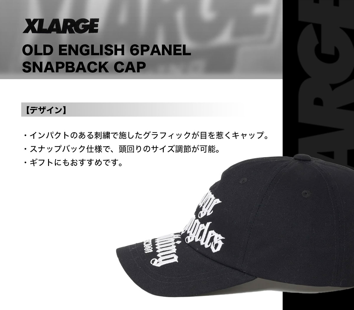 【検索キーワード】エクストララージ メンズ キャップ 帽子 ロゴ 刺繍 ブラック ストリート 人気ブランド XLARGE 通販 2025 新作 | OLD ENGLISH 6PANEL SNAPBACK CAP【101253051008】かっこいい おしゃれ プレゼント 正規取扱い店【XLARGE】静岡県 静波 ジャックオーシャンスポーツ サーフボード スケートボード スノー アパレル 各種ブランド 正規取扱店 2025秋