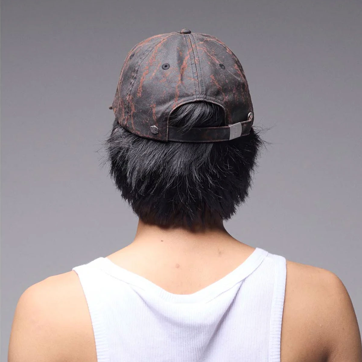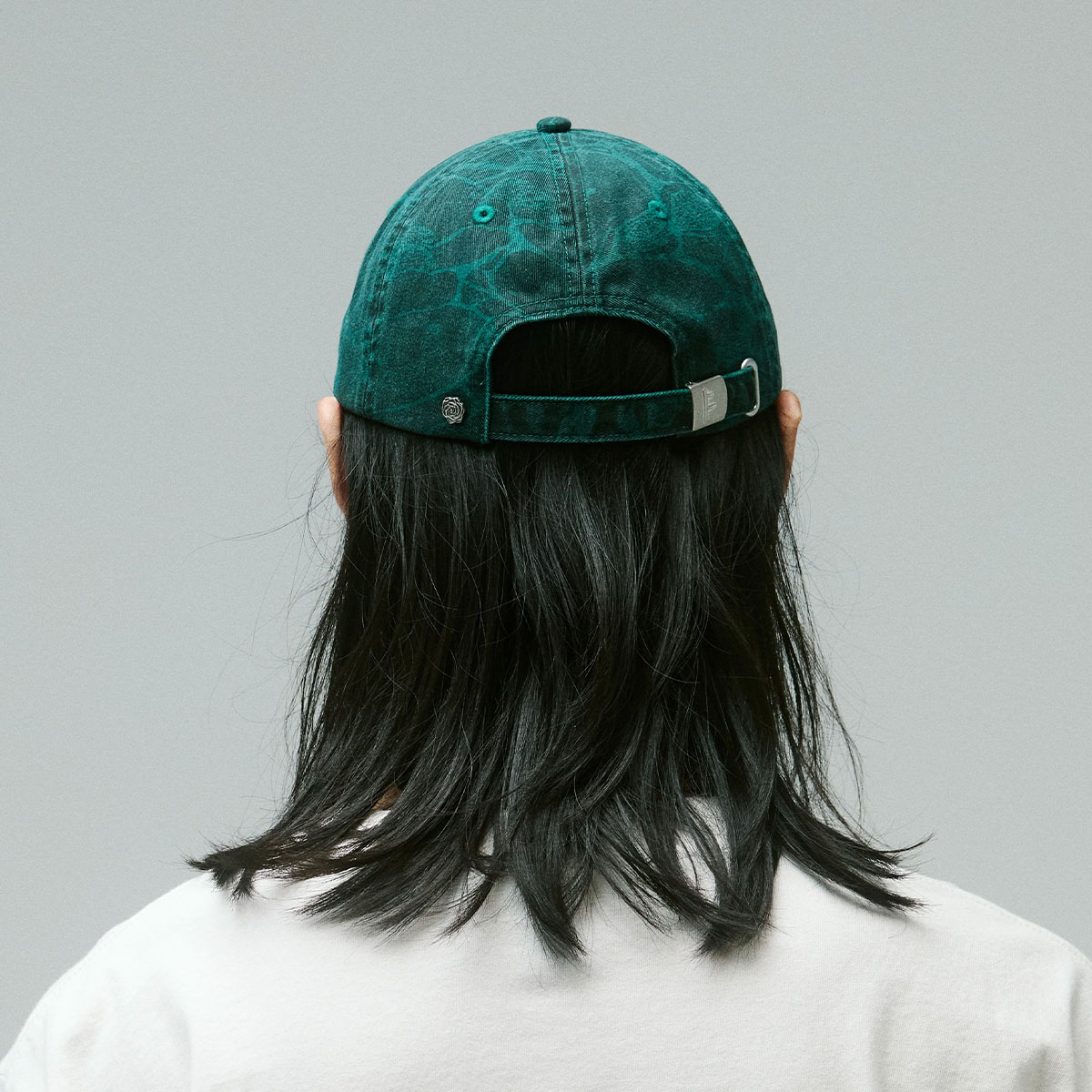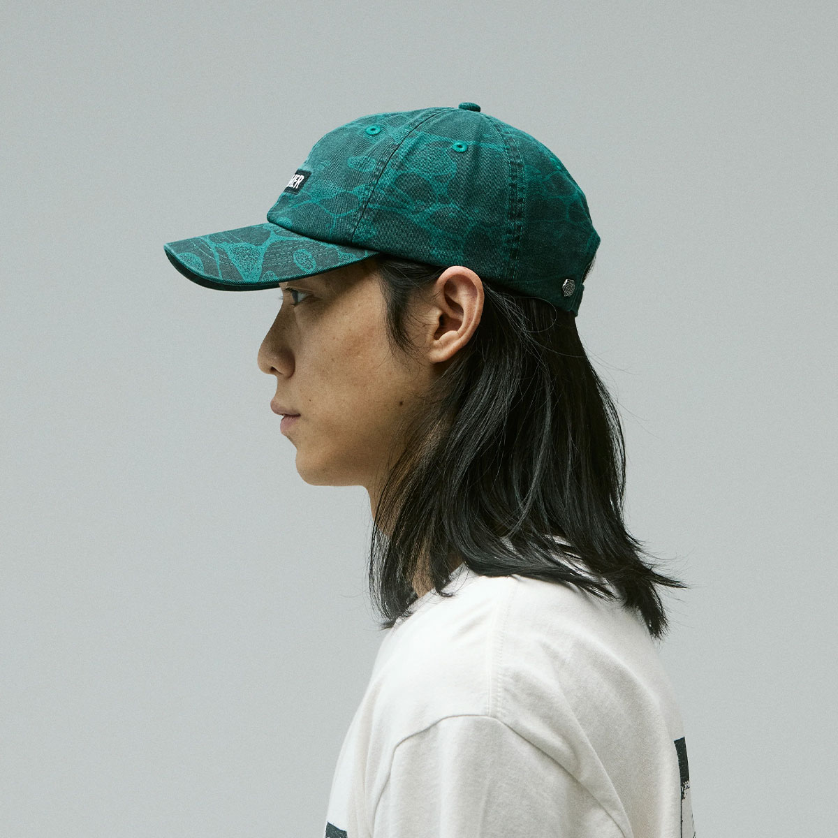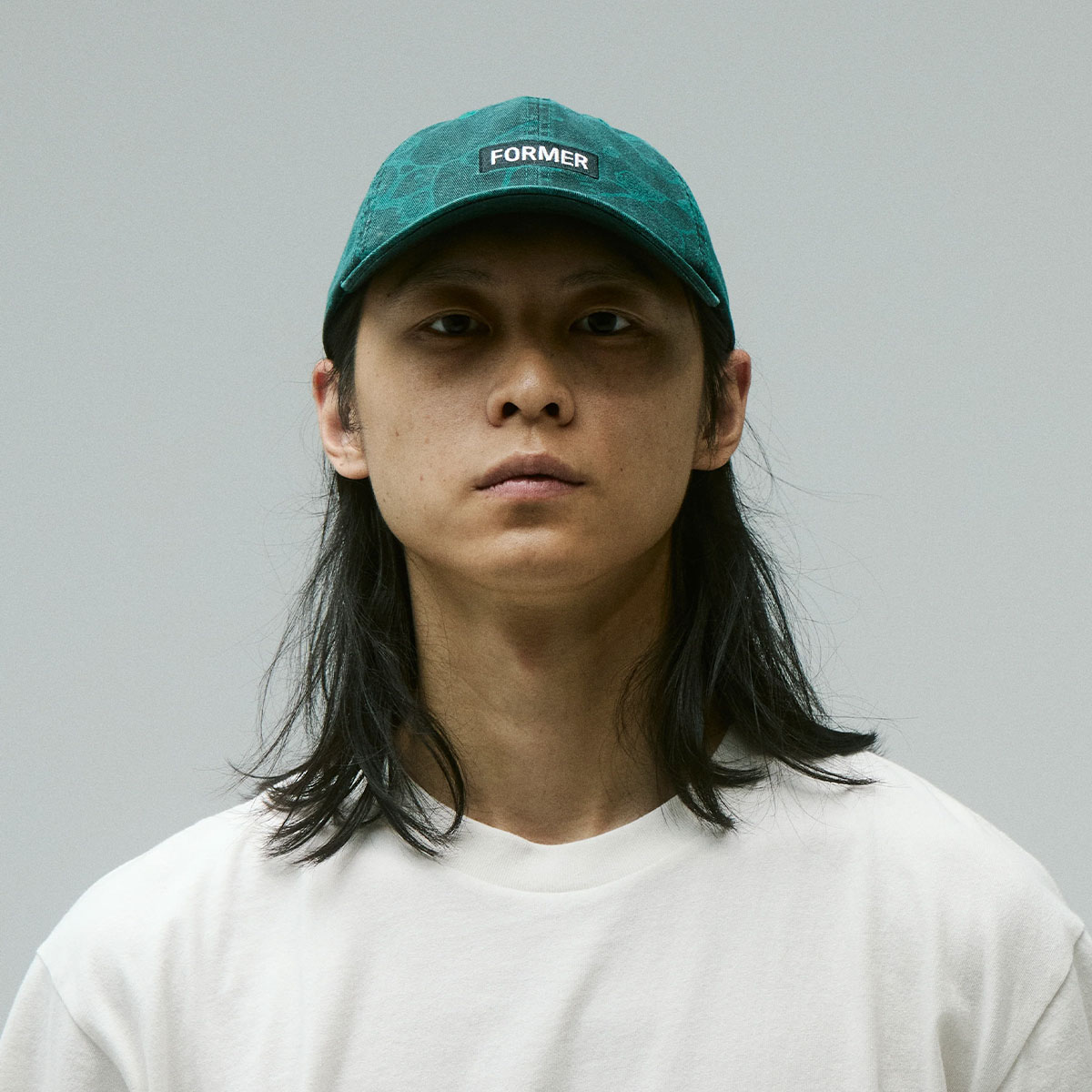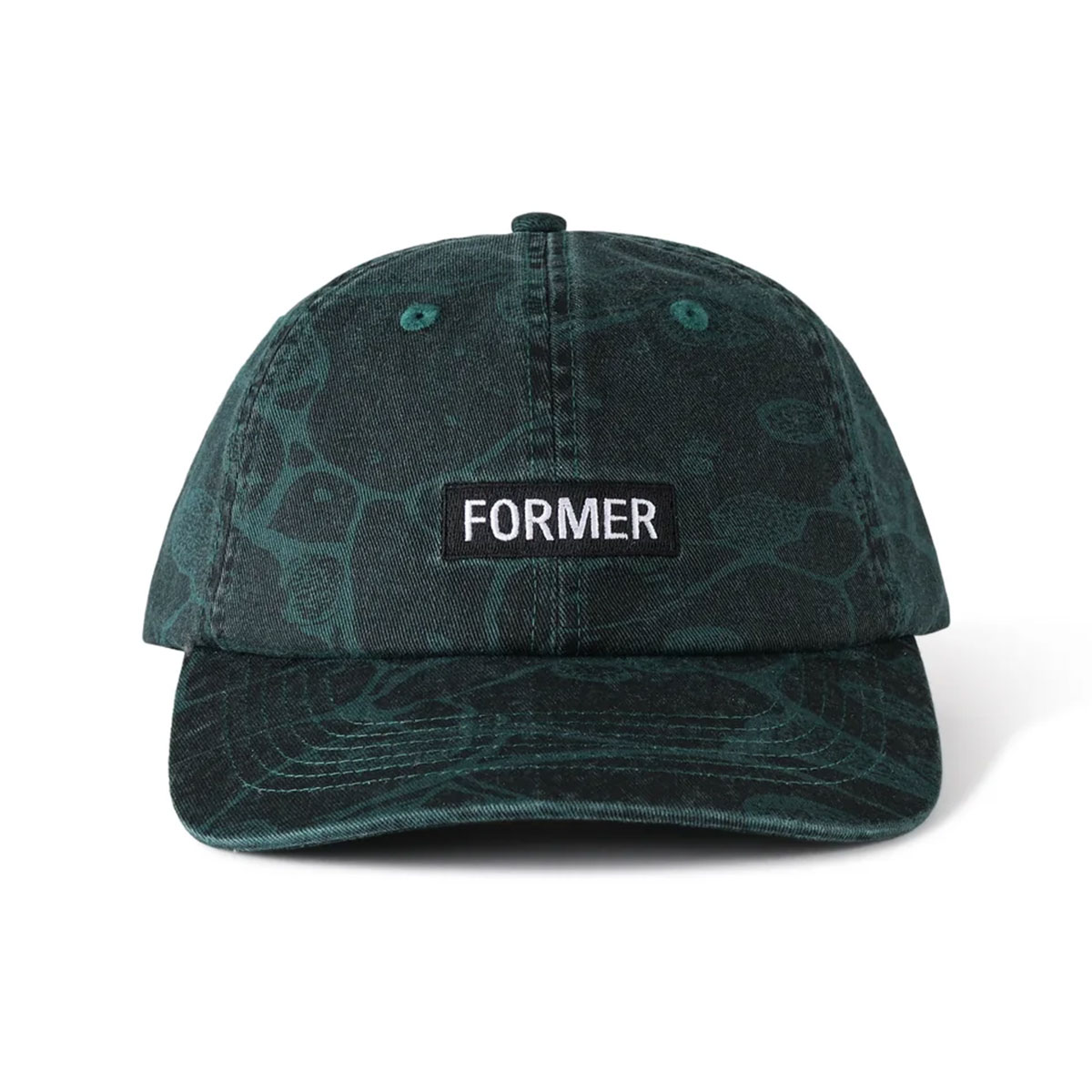 快適な100%コットンツイル素材を使用し、ヴィンテージウォッシュ仕上げのカーブピーク6パネルキャップです。フロントにグラフィック刺繍、キャップ背面にシグネチャーFORMERローズリベット、フランチャイズFロゴ入りメタルクラスプとOリングクロージャーが特徴です。