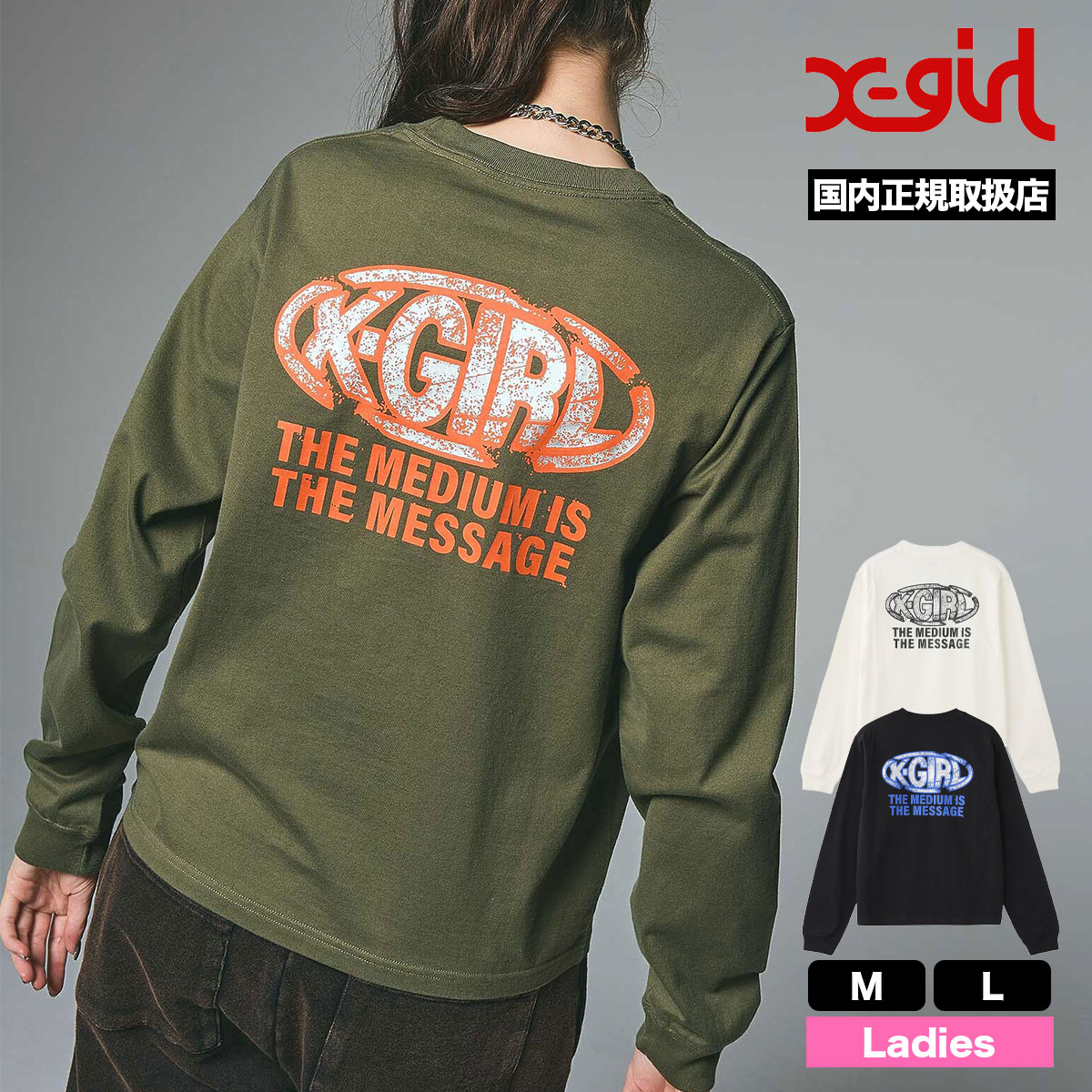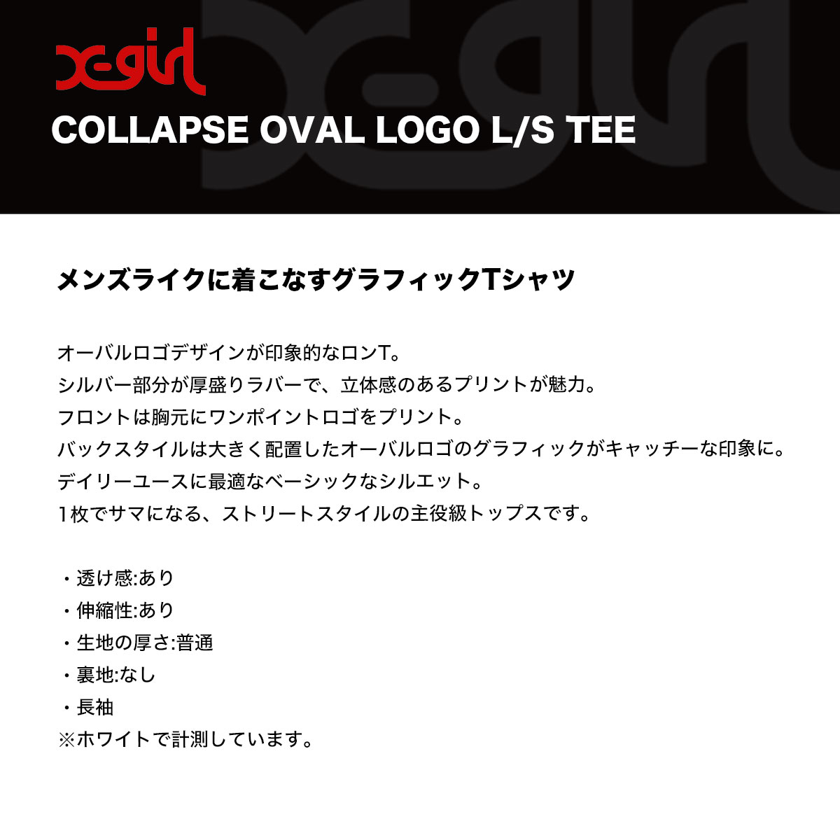 【検索キーワード】エックスガール レディース ロンT 長袖Tシャツ オーバルロゴ 全3色 M L ストリート人気ブランド X-GIRL 2025 新作 | COLLAPSE OVAL LOGO L/S TEE【105253011003】かわいい おしゃれ プレゼント 正規取扱い店【XGIRL】静岡県 静波 ジャックオーシャンスポーツ サーフボード スケートボード スノー アパレル 各種ブランド 正規取扱店 2025秋
