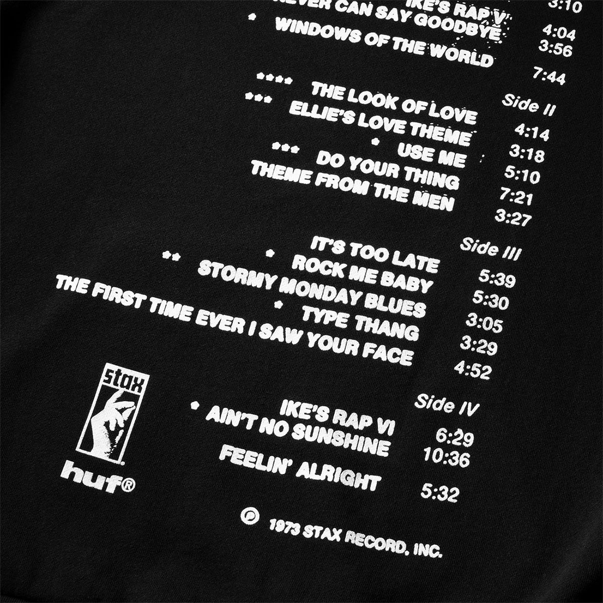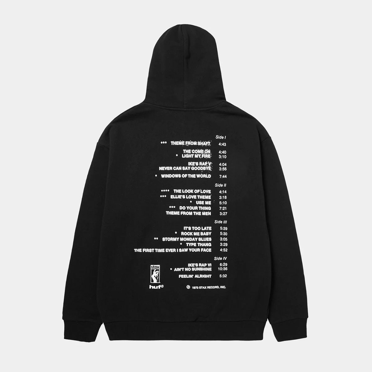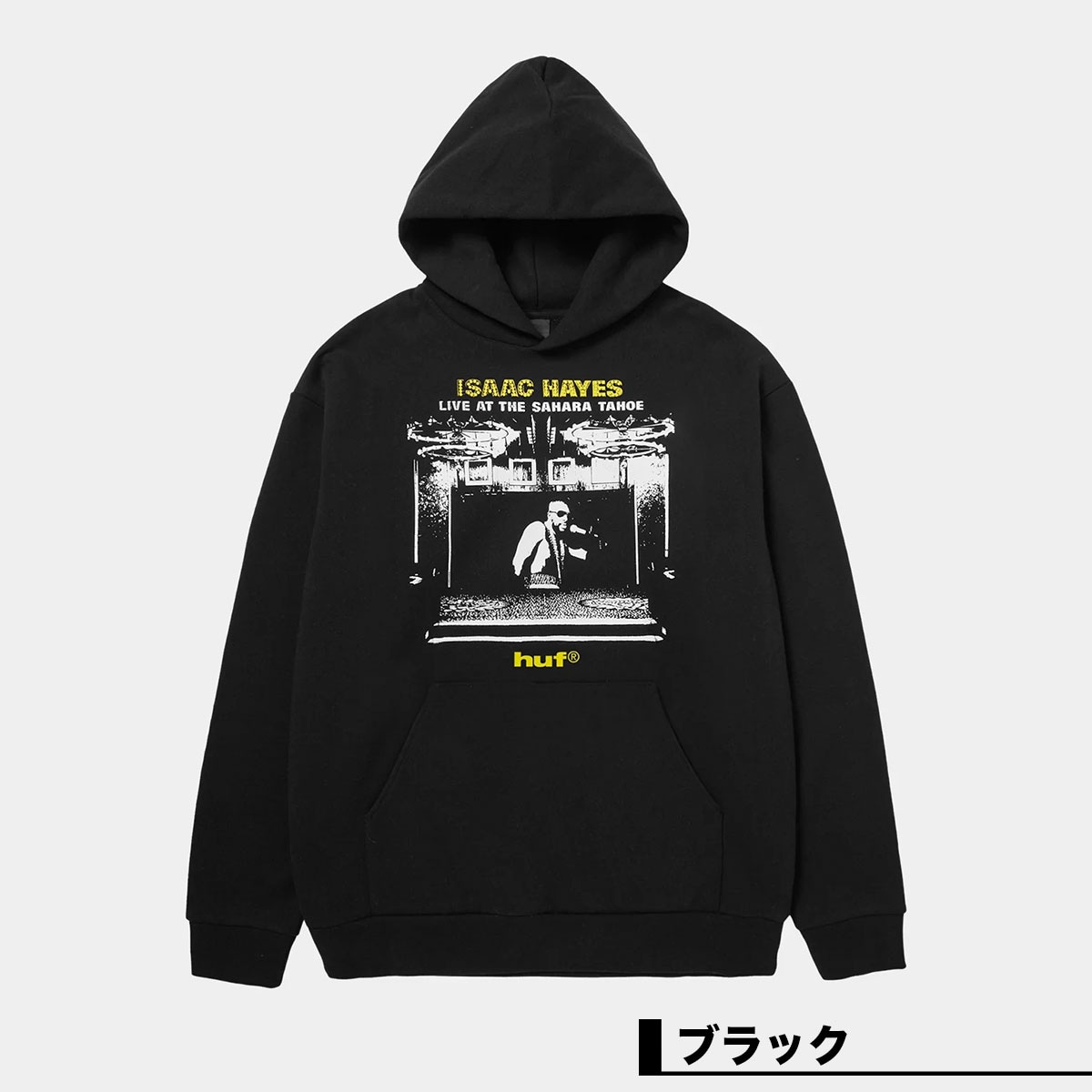 【国内正規取扱店】 HUF|ハフ HUF X ISAAC HAYES TAHOE HEAVYWEIGHT HOODIE 【PF00775】 HUF Isaac Hayes カプセルコレクションでは、すべてが名曲かつオリジナルである彼の代表的アルバム『Black Moses』『Live at the Sahara Tahoe』『Hot Buttered Soul』のアートワークを採用。ヘビーウェイトのカットソーやフーディー、エンジニアードニットに刺繍を施した特別仕様のセーターなど、Isaac Hayes の革新的なソングライティングとアートビジョンを HUF の視点で再構築・再解釈したラインナップとなります。 ・75/25コットンポリ混紡(420G)のヘビーウェイトフーディー ・フロントとバックにプリントアートワーク ・カンガルーポケット ・ダブルレイヤーフード ・ドロップショルダー&ボクシーフィット ・首の内側にHUF織りラベル ・Isaac Hayesコラボレーション ■カラー:ブラック ■サイズ:L