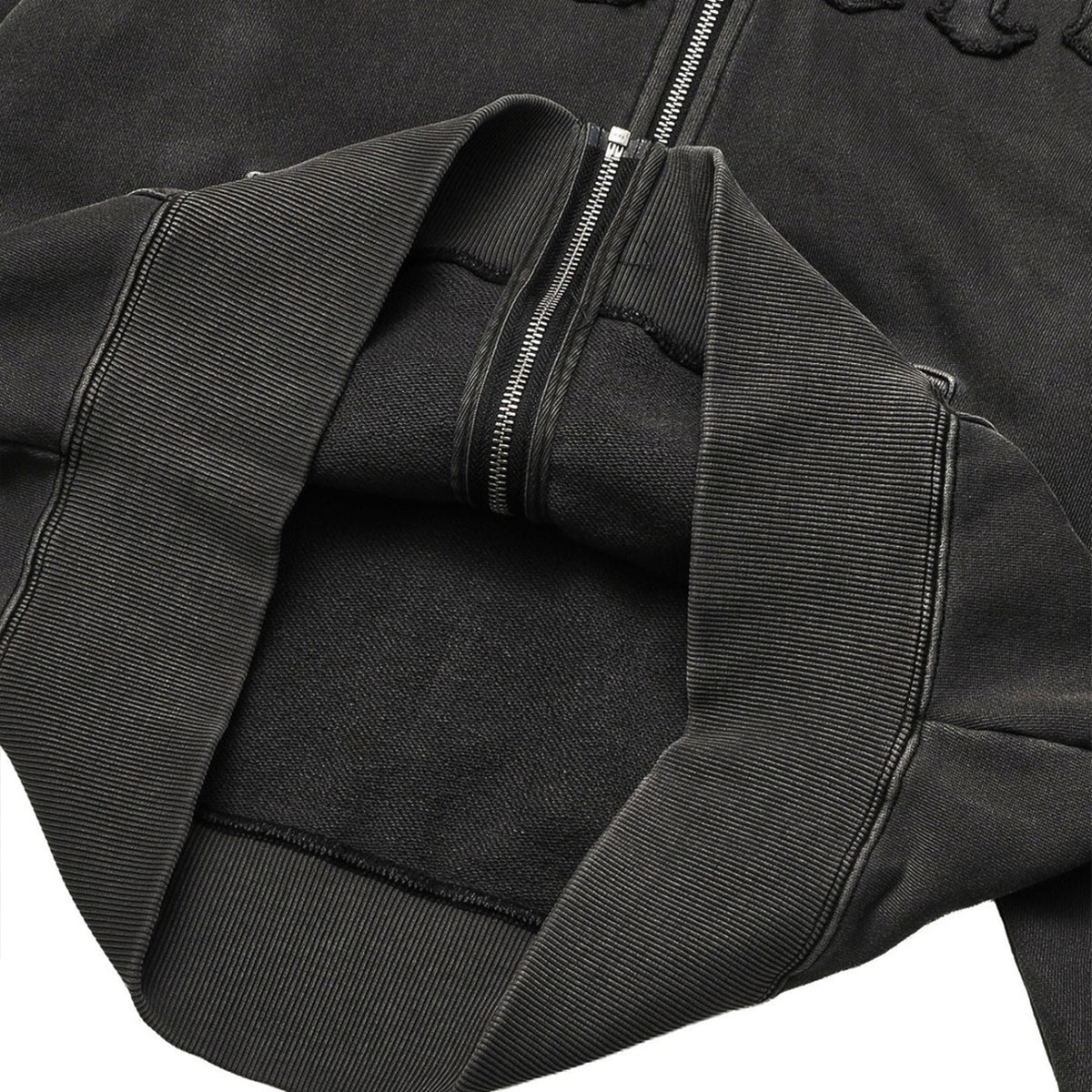 LOGO PATCH PIGMENT DYED ZIP UP SWEAT HOODIE