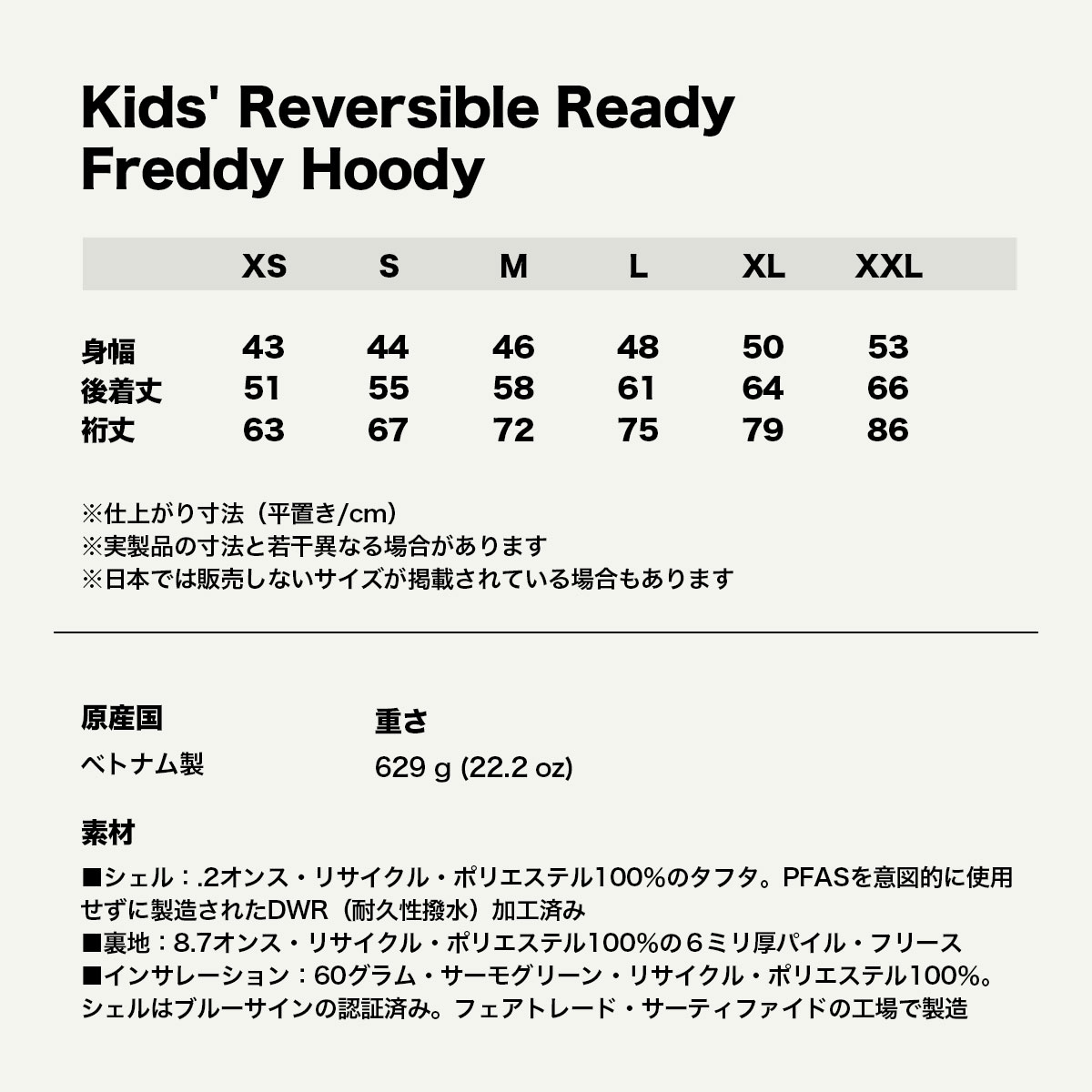 【国内正規取扱店】 パタゴニア|Patagonia Kids' Reversible Ready Freddy Hoody キッズ・リバーシブル・レディ・フレディ・フーディ 【68095】 片面にキルト加工のダウン・セーターの装い、もう片面にレトロX・ジャケットのスタイルを組み合わせたのが、キッズ・リバーシブル・レディ・フレディ・フーディ。耐水性を備えたシェルとソフトで快適な6ミリ厚パイル・フリースの間に、濡れても保温性を維持する60グラム・サーモグリーン・リサイクル・ポリエステル100%のインサレーション入り。フェアトレード・サーティファイドの工場で製造 ◆カラー: ・アマニタレッド ・ニューネイビー ・プラムメットパープル ・ドライドマンゴー ◆サイズ:XL / XXL ◆品番:68095