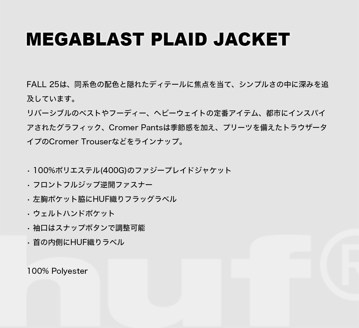 【検索キーワード】HUF ハフ ジャケット メンズ レディース ファスナー チェック L スケートボード スケーター 人気ブランド 通販 新作 2025 | MEGABLAST PLAID JACKET【JK00485】おすすめ オススメ オシャレ シンプル カジュアル かっこいい 定番 アウトドア マリンスポーツ プレゼント 静岡県 静波 ジャックオーシャンスポーツ サーフボード スケートボード スノー アパレル patagonia他 各種ブランド 正規取扱店