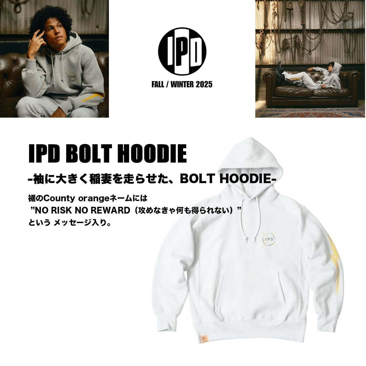 【40%OFF クリアランスセール】ipd アイピーディー プルオーバーパーカー メンズ レディース スウェットセットアップ フーディー トップス ロゴ 稲妻 人気 サーフィン ブランド | IPD BOLT HOODIE【IPDSWBL-1013】