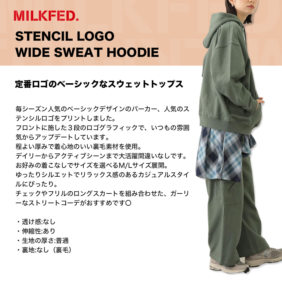 ミルクフェド レディース パーカー スウェット フード ロゴ 着回し 全3色 M L 人気ブランド MILKFED. 新作 | STENCIL LOGO WIDE SWEAT HOODIE【103253012006】