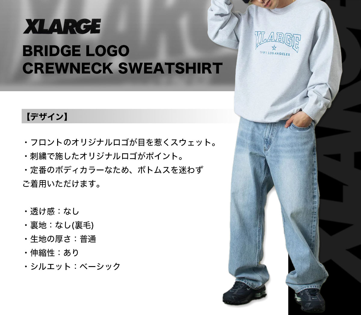 【検索キーワード】エクストララージ メンズ スウェット トレーナー トップス ロゴ 全3色 M L ストリート 人気ブランド XLARGE 通販 2025 新作 | BRIDGE LOGO CREWNECK SWEATSHIRT【101253012001】かっこいい おしゃれ プレゼント 正規取扱い店【XLARGE】静岡県 静波 ジャックオーシャンスポーツ サーフボード スケートボード スノー アパレル 各種ブランド 正規取扱店 2025秋