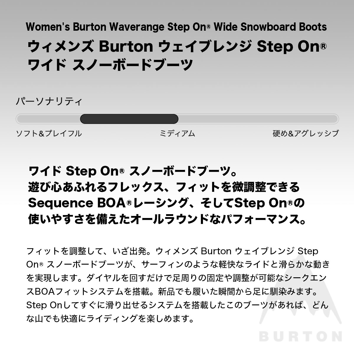 【検索キーワード】BURTON バートン スノーボードブーツ ステップオン ウェイブレンジ ワイド ウィメンズ レディース 25.5 26.0cm スノボー 人気 ブランド 新作 | WAVERANGE STEP ON【W26JP-302981】おすすめ オススメ オシャレ シンプル カジュアル かっこいい 定番 アウトドア マリンスポーツ プレゼント 静岡県 静波 ジャックオーシャンスポーツ サーフボード スケートボード スノー アパレル patagonia他 各種ブランド 正規取扱店