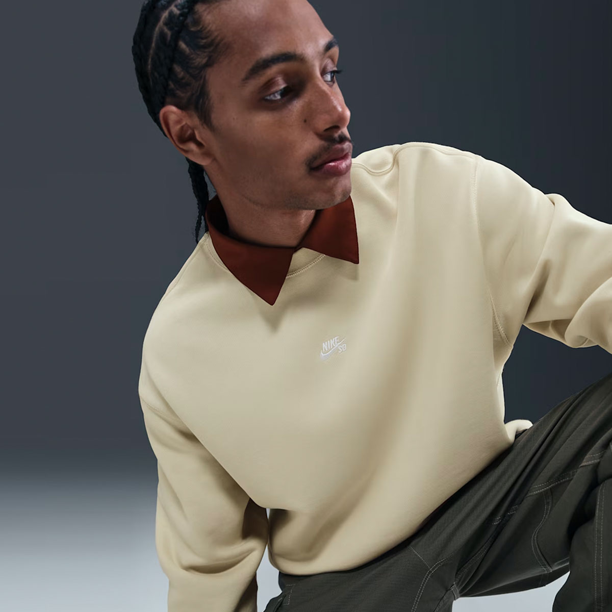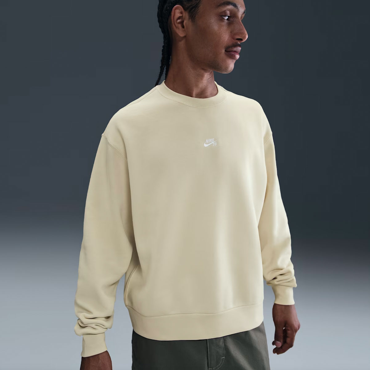 NIKE SB ナイキエスビー メンズ フリース スケートボードクルー スウェット ロゴ 刺繍 シンプル ライトカーキ/ホワイト M L スケボー スケーター 人気 ブランド | エッセンシャル ロゴ L/Sクルー【FV7354-229】