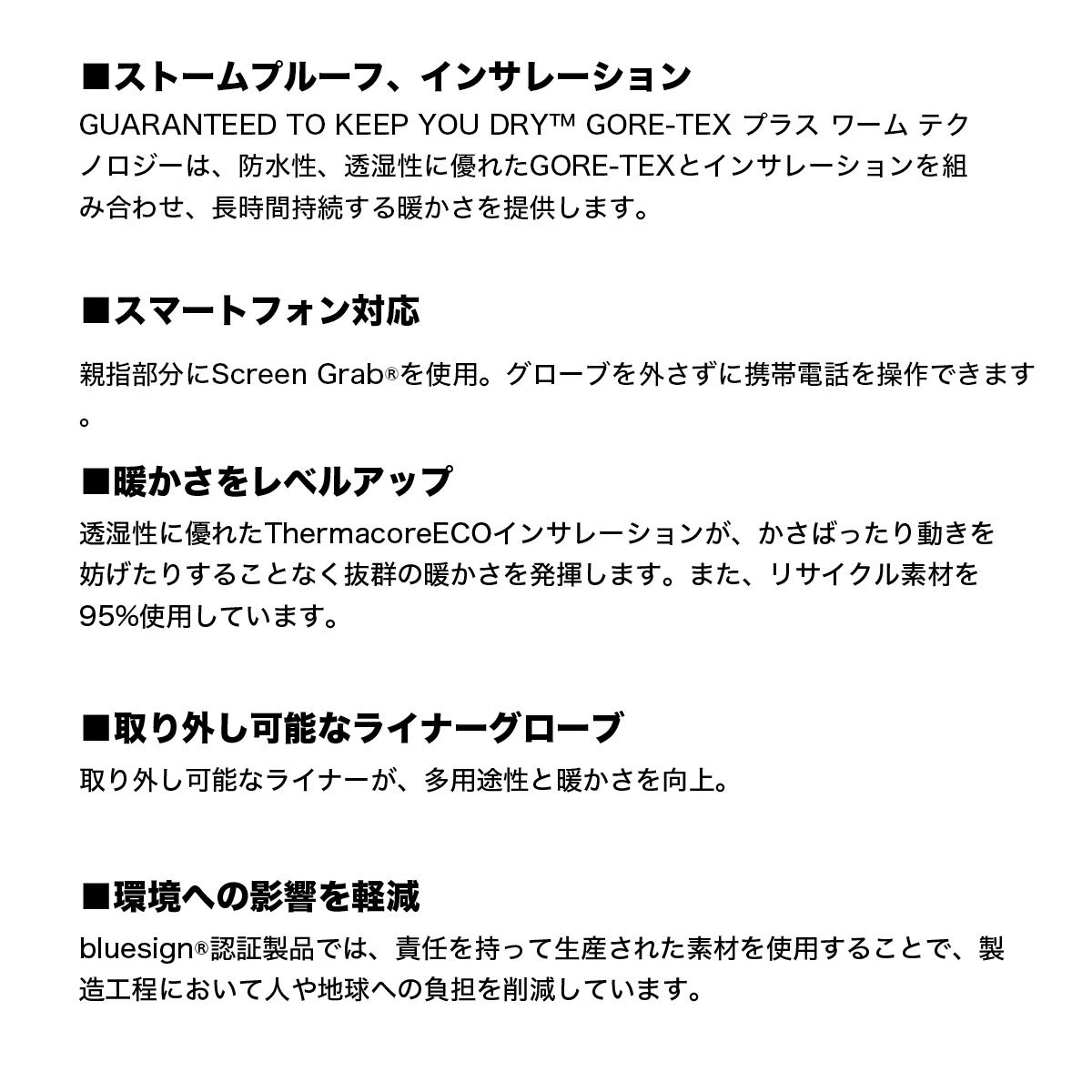 GORE-TEX スキー&スノーボード ウインター グローブ。 インサレーション入り、GORE-TEX並みの防水性、タッチスクリーン対応機能、取り外し可能なライナー、ロープロファイルの袖口。