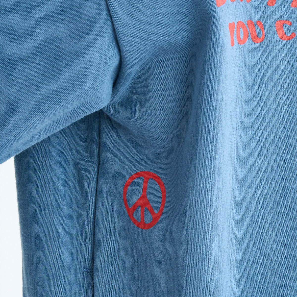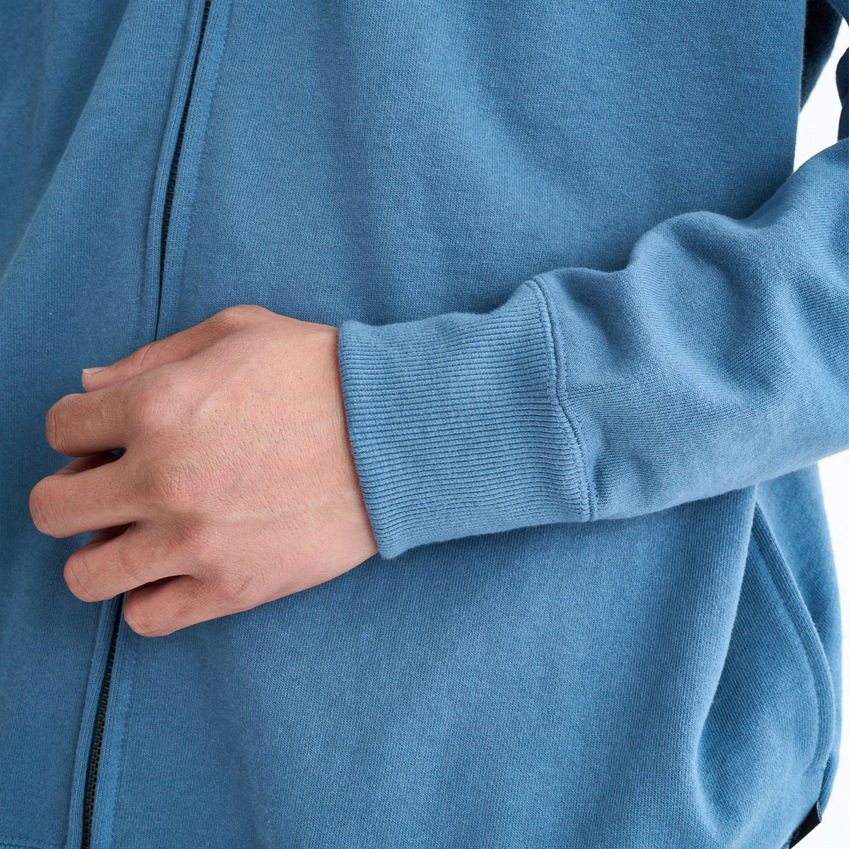 程良いハリと厚みを持つ裏毛を使用したジップフーディスウェット。左胸と背中には今シーズンのテーマを象徴するメッセージを、崩しフォントのグラフィックでプリントしました。サイドポケット付き。シルエットは汎用性の高いレギュラーフィット。