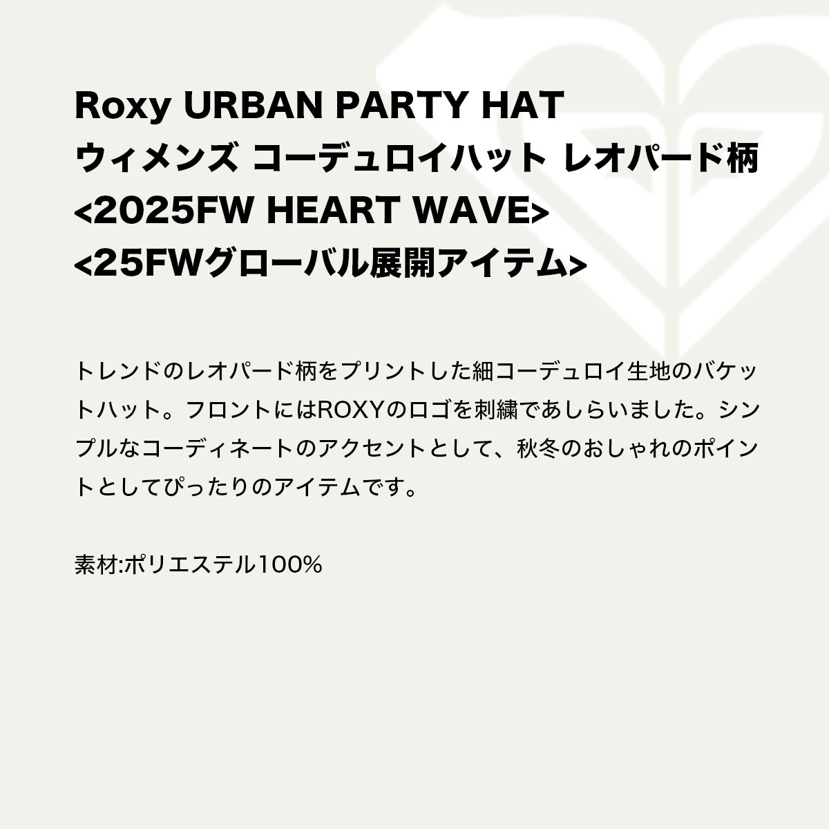 【検索キーワード】ロキシー レディース コーデュロイハット レオパード柄 帽子 ロゴ刺繍 サーフィン スノー 人気ブランド ROXY 通販 2025 新作 | URBAN PARTY HAT【ERJHA04445】おすすめ オススメ オシャレ シンプル カジュアル かっこいい 定番 アウトドア マリンスポーツ プレゼント 静岡県 静波 ジャックオーシャンスポーツ サーフボード スケートボード スノー アパレル patagonia他 各種ブランド 正規取扱店