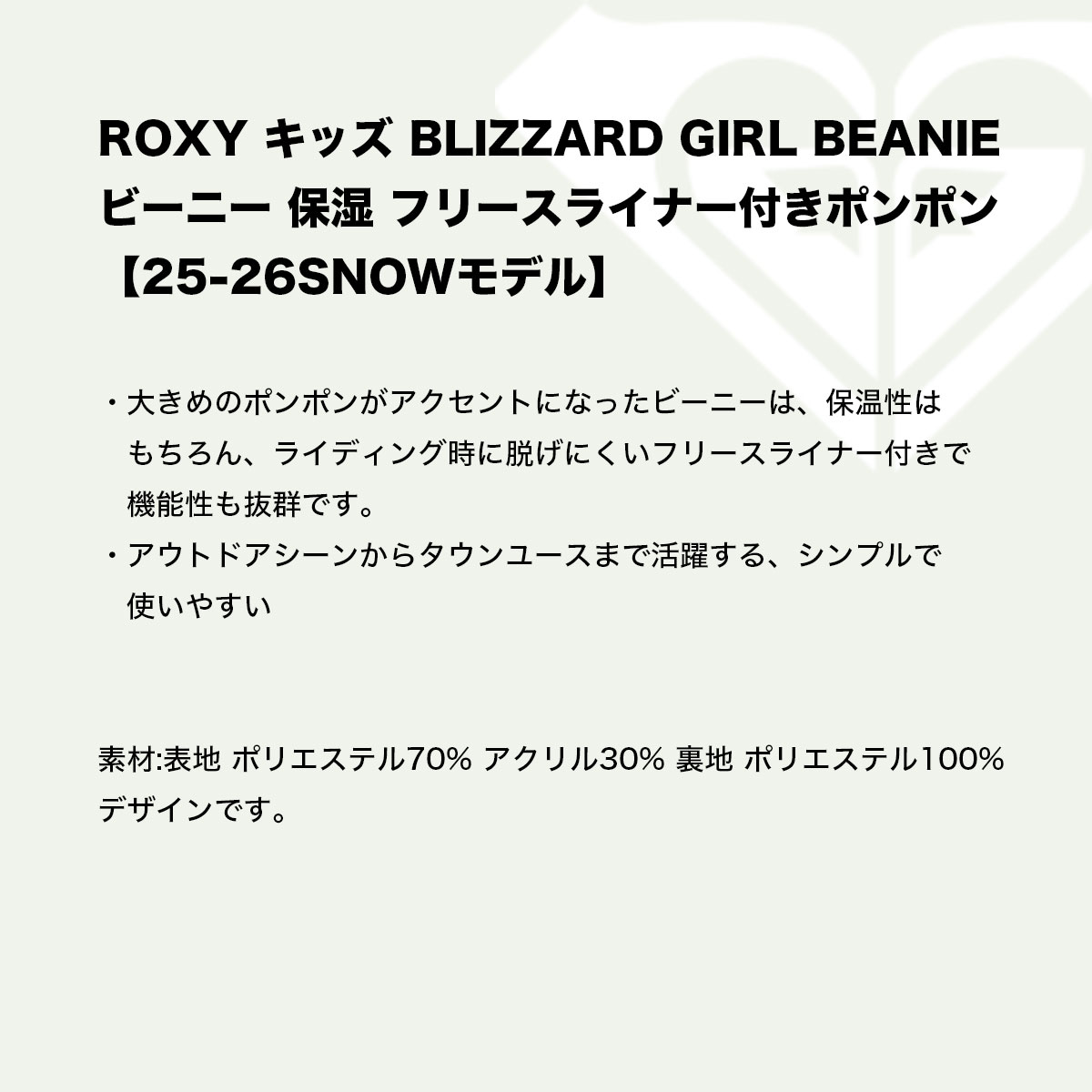 ロキシー キッズ ビーニー ニット帽 帽子 ポンポン 子供 全2色 サーフィン スノー 人気ブランド ROXY 通販 2025 新作 | BLIZZARD GIRL BEANIE【TBE253408】