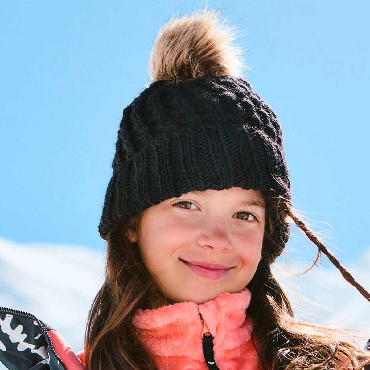 キッズ ビーニー 保湿 フリースライナー付きポンポン