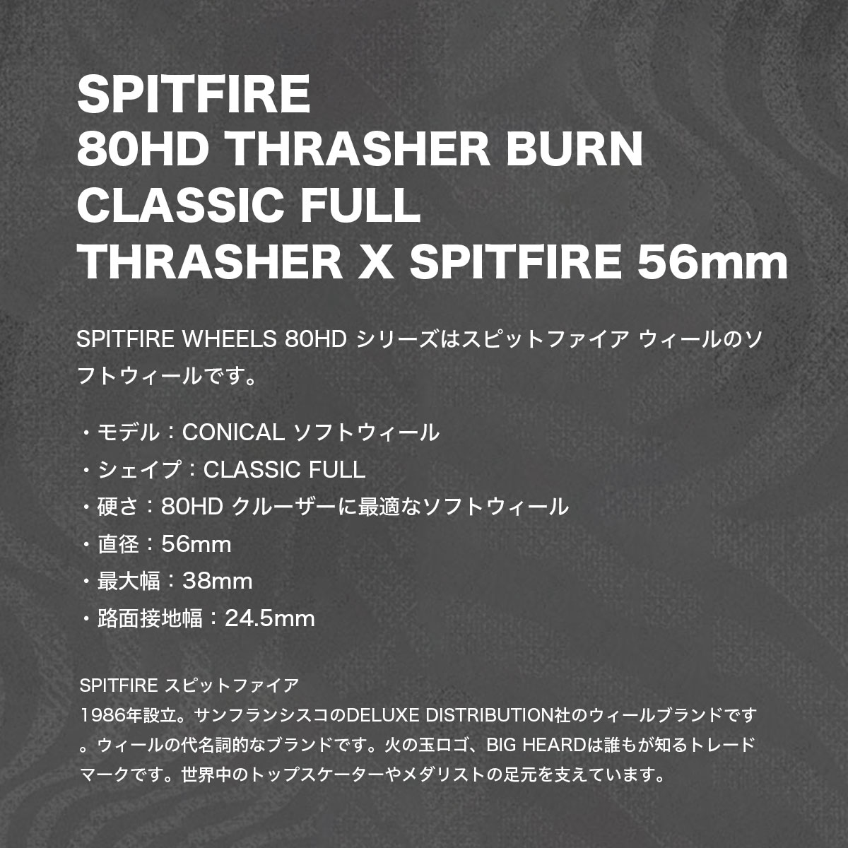 【検索キーワード】スピットファイア ウィール スラッシャー コラボ ソフトウィール スケートボード スケボー 人気ブランド SPITFIRE WHEELS × THRASHER | THRASH&BURN 80HD CLASSIC FULL 56mm【2041009656】静岡県 静波 ジャックオーシャンスポーツ サーフボード スケートボード スノー アパレル patagonia他 各種ブランド 正規取扱店