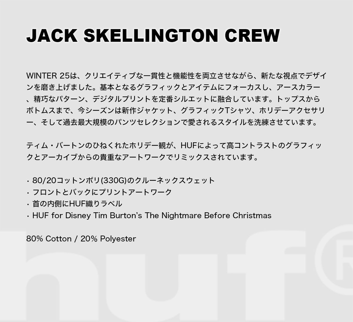 【検索キーワード】HUF ハフ スウェット トレーナー メンズ レディース he Nightmare Before Christmas M L スケートボード スケーター 人気ブランド 通販 新作 2025 | JACK SKELLINGTON CREW【PF00803】オススメ オシャレ シンプル カジュアル かっこいい 定番 アウトドア マリンスポーツ プレゼント 静岡県 静波 ジャックオーシャンスポーツ サーフボード スケートボード スノー アパレル patagonia他 各種ブランド 正規取扱店