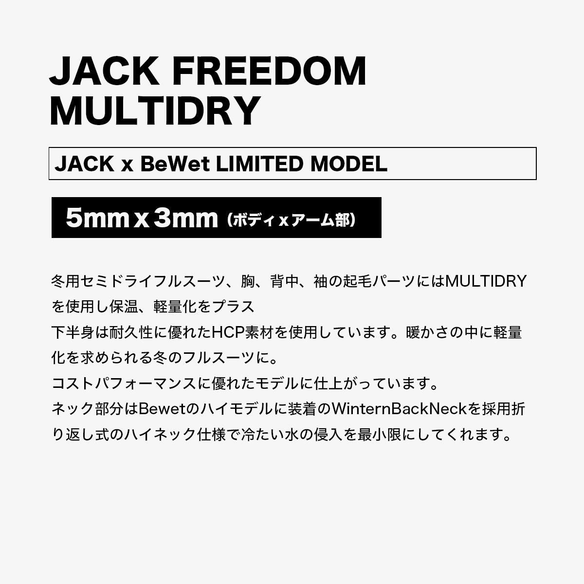 【検索キーワード】サーフィン ウェットスーツ フルスーツ 5mm メンズ ビーウェット 人気ブランド BEWET ジャック限定モデル | x JACK LIMITED MODEL 【 JACK FREEDOM MULTIDRY 】 定番 コラボモデル マリンスポーツ アウトドア おしゃれ 注目 通販 通信販売 ジャックオーシャンスポーツ