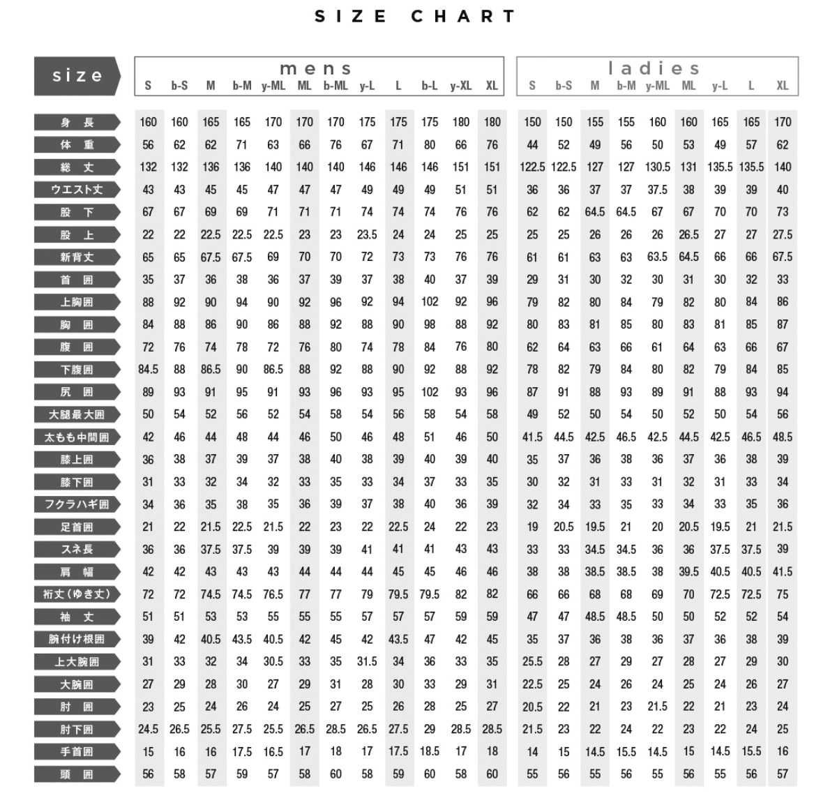 ■サイズ:M-M / M-ML / M-B-ML / M-L / M-XL