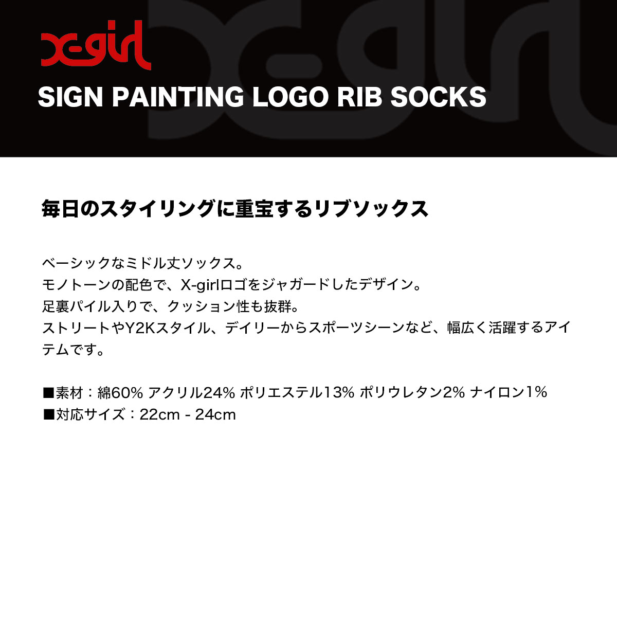 【検索キーワード】エックスガール リブソックス 靴下 おしゃれ 小物 22-24cm ストリート人気ブランド X-GIRL 通販 2025 新作 | SIGN PAINTING LOGO RIB SOCKS【105254054004】かわいい おしゃれ プレゼント 正規取扱い店【XGIRL】静岡県 静波 ジャックオーシャンスポーツ サーフボード スケートボード スノー アパレル 各種ブランド 正規取扱店 2025秋