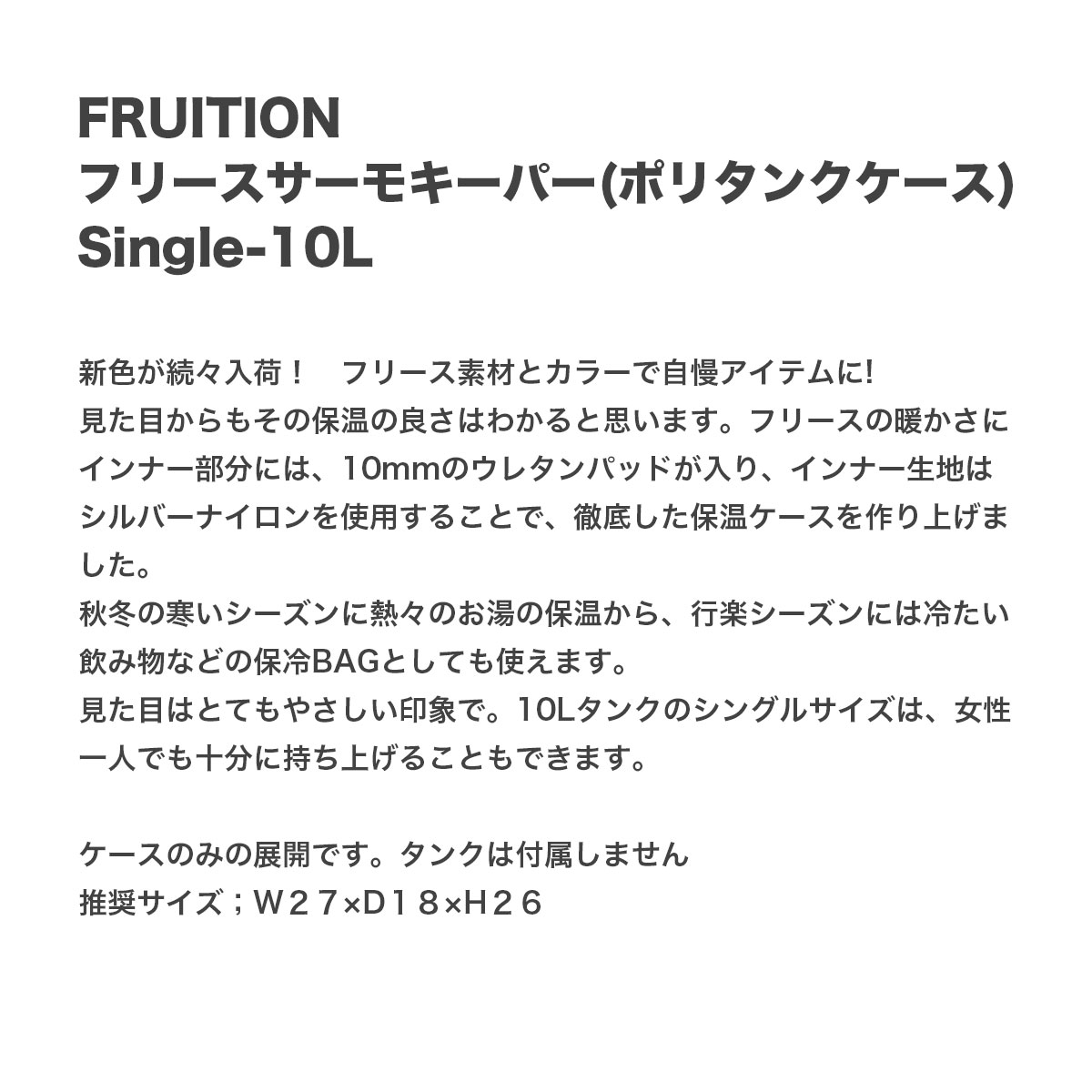 • サーフィン ポリタンクケース シングル 10L フリース 保温 保冷 海 アウトドア 人気ブランド FRUITION | フリューション フリースサーモキーパー【SINGLE】