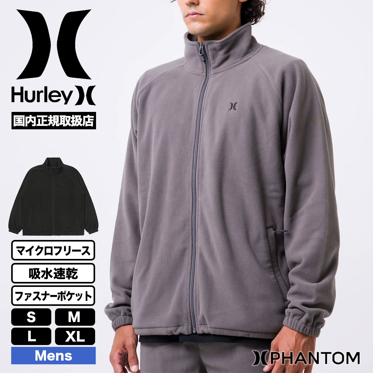 【20%OFF 新春セール】ハーレー ファントム ジップフリース ジャケット メンズ 軽量 吸水速乾 マイクロフリース 全2色 S M L XL 人気ブランド HURLEY 新作 | PHANTOM FLEECE ICON JACKET【MUFF252016】