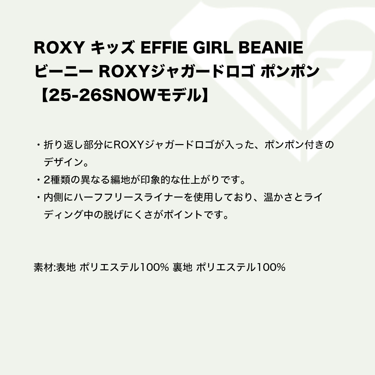 ロキシー キッズ ビーニー ニット帽 帽子 ポンポン 子供 全2色 サーフィン スノー 人気ブランド ROXY 通販 2025 新作 | EFFIE GIRL BEANIE【ERGHA03356】