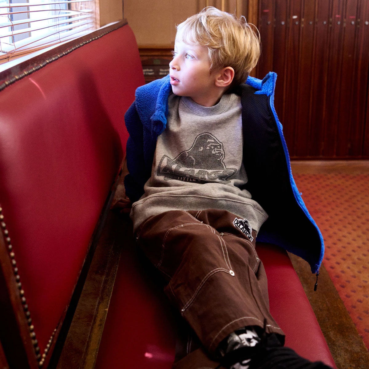 OGゴリラのグラフィックをラインストーンで表現した特別感のあるトレーナーです。 裏毛仕様かつ綿100%生地でやわらかく、お肌にやさしくタッチします。 ゆとりを持たせたリラックスシルエットもポイント。 さまざまなボトムと相性が良く、デイリーに着回しが利きます。 内側にお名前を記入できるタグつきです。
