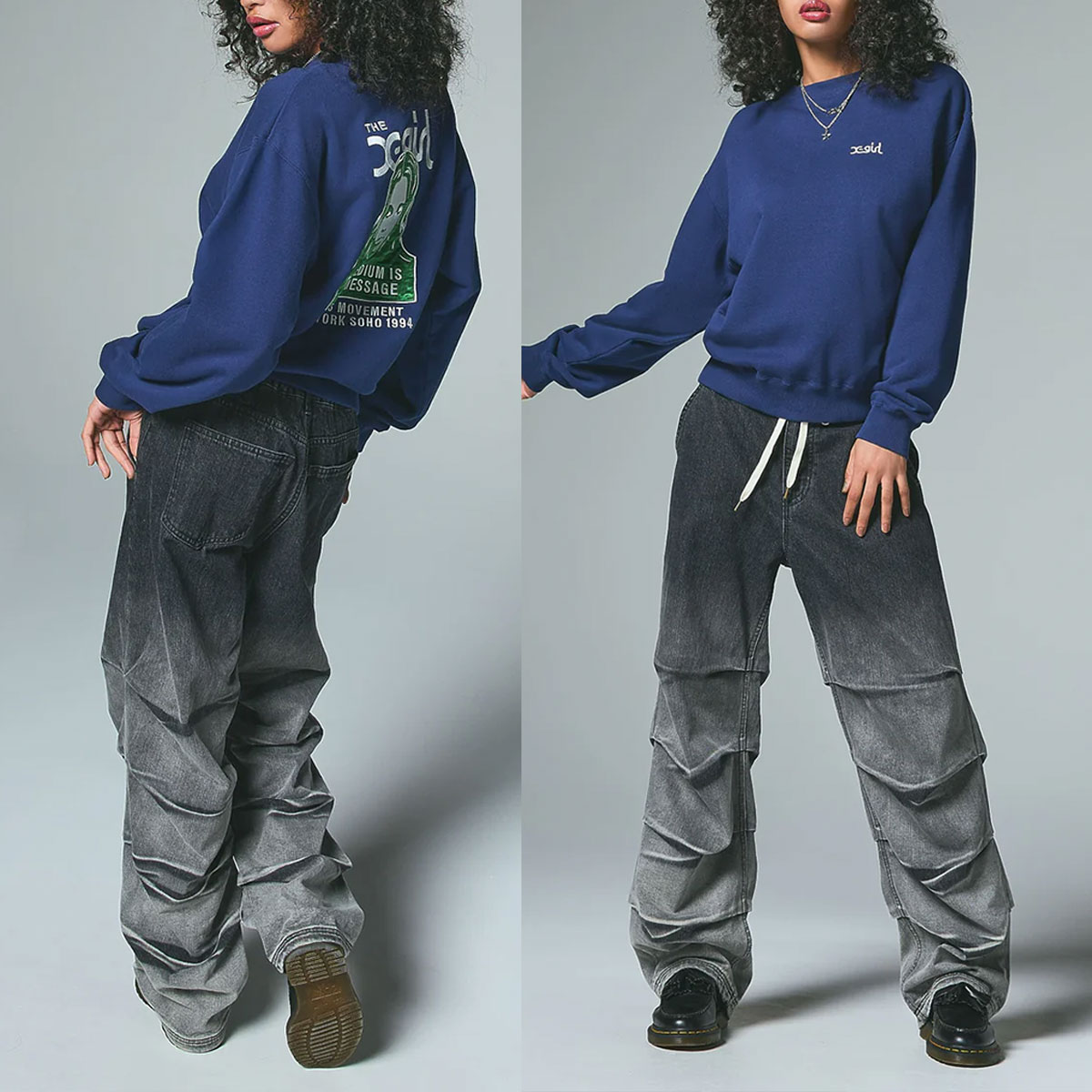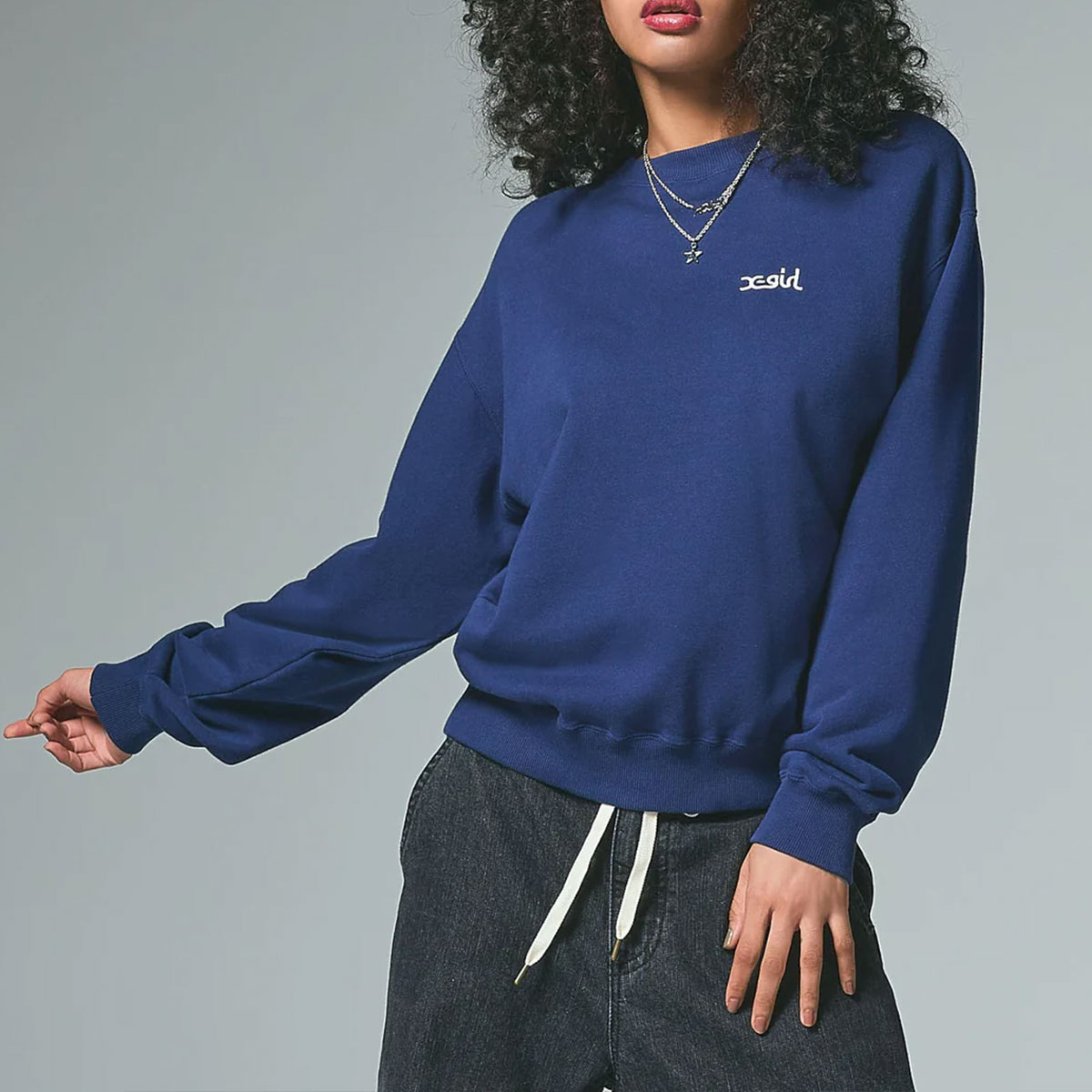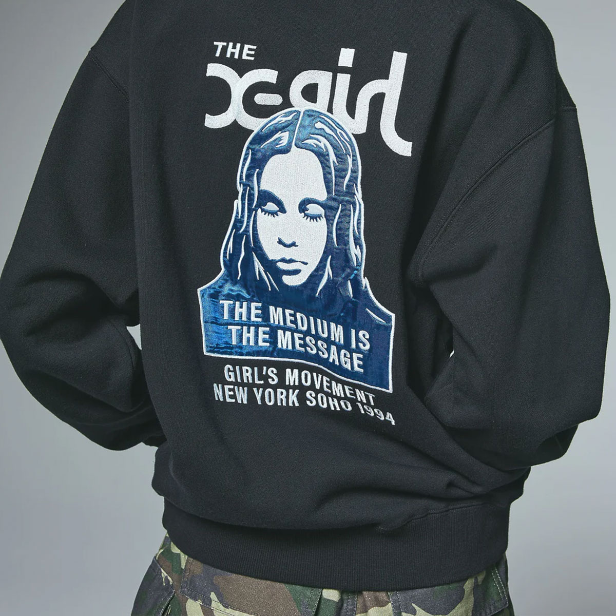 X-girlのFACEロゴグラフィックが魅力のスウェットトップス。