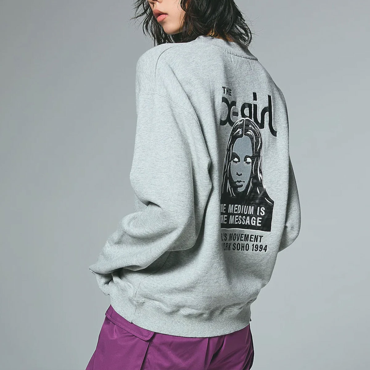 裏毛のスウェット素材で、秋冬から春先までロングシーズン活躍します。 加工感のあるデニムやカーゴパンツと合わせた、メンズライクなストリートスタイルがおすすめ。