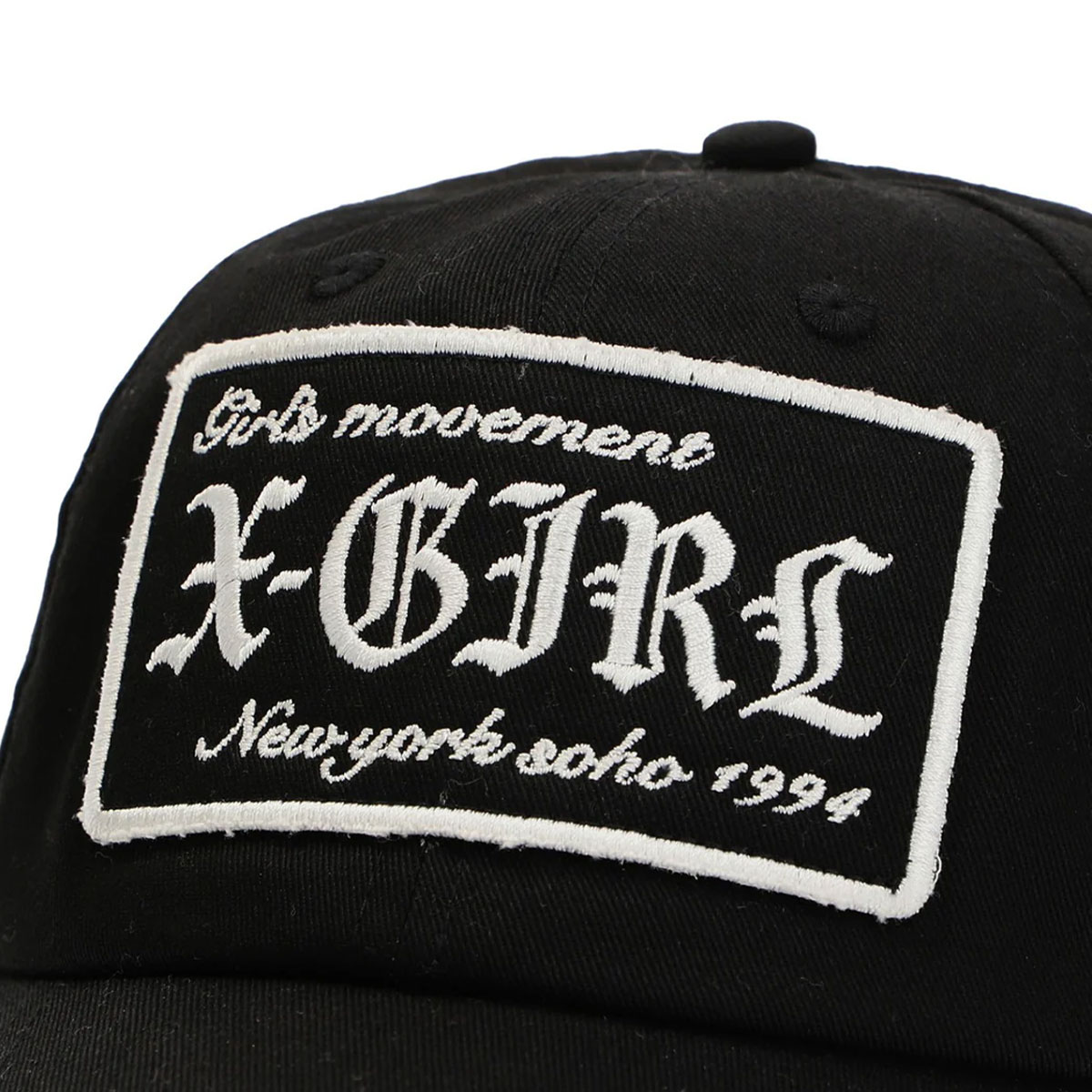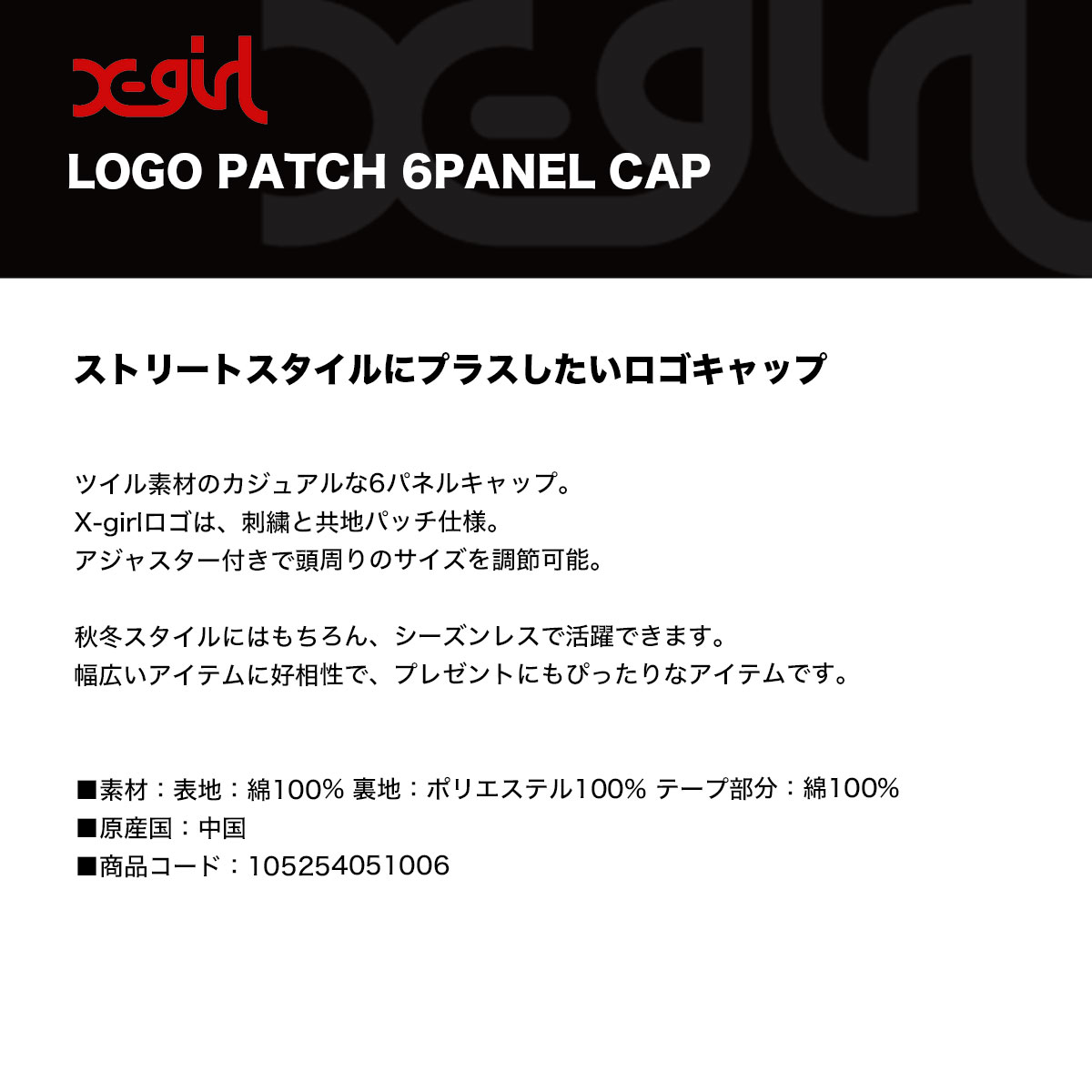 エックスガール レディース 6パネルキャップ ツイル ロゴ 刺繍 パッチ サイズ調整可 ブラック ストリート人気ブランド X-GIRL 2025 新作【105254051006】