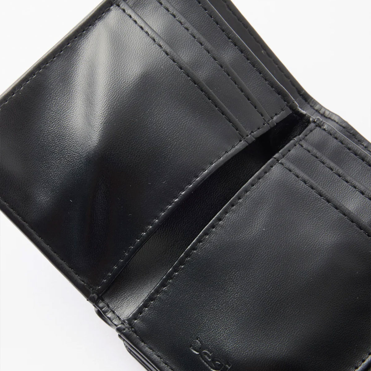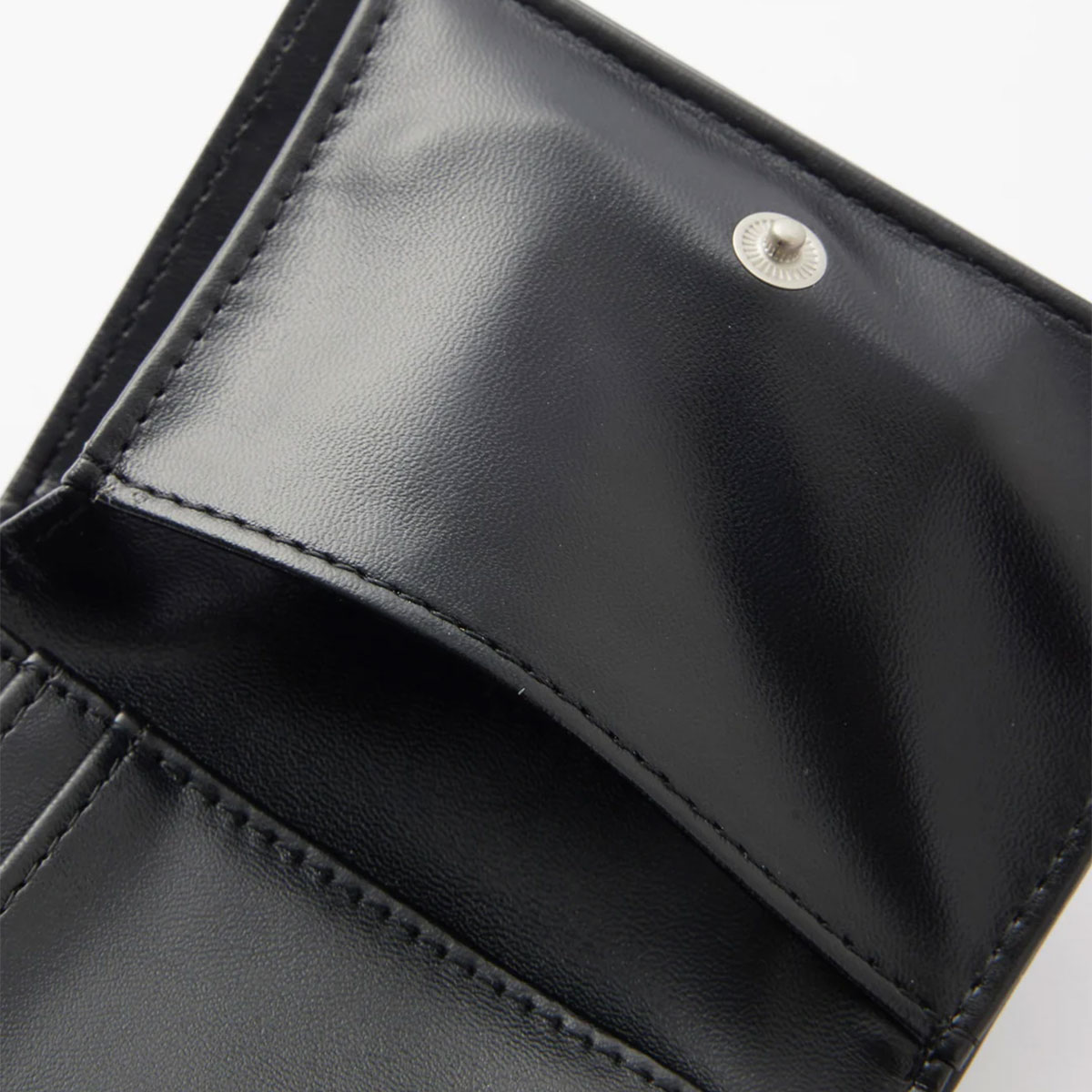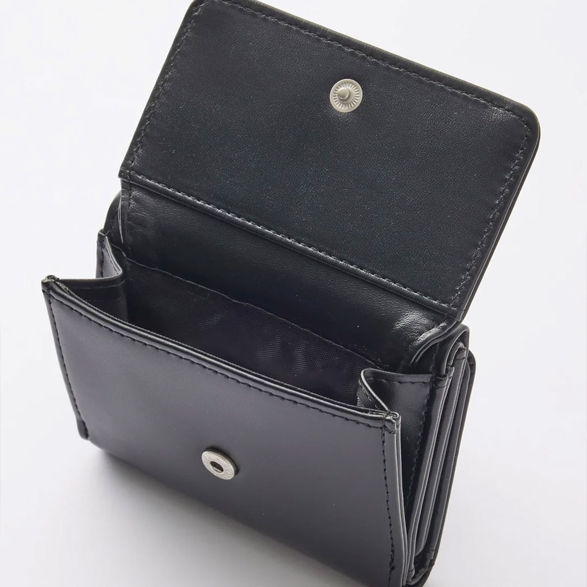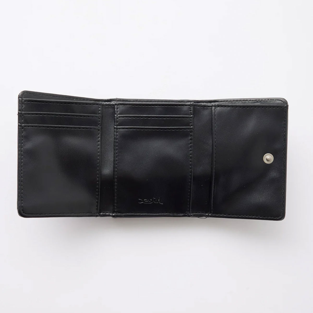 フェイクレザー素材で上品に仕上げた三つ折り財布。
