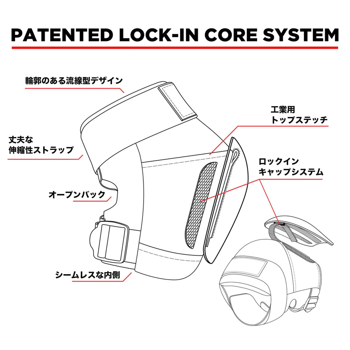 ・ 優れたフィット感と素早い着脱を実現するオープンバックデザイン