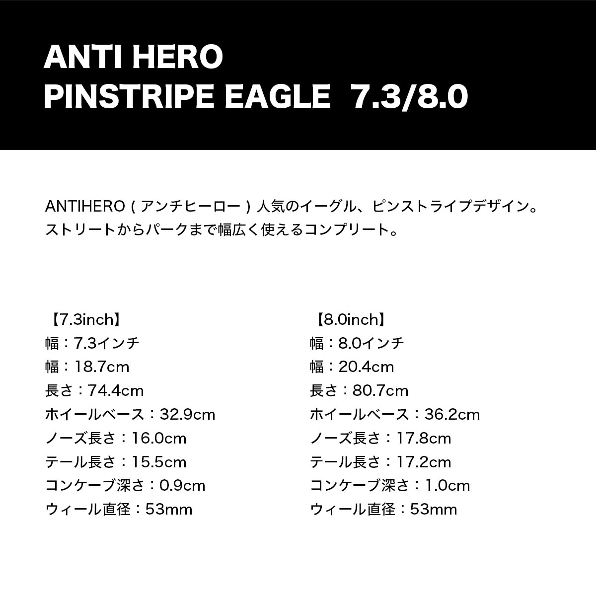 アンチヒーロー スケートボード スケボー コンプリート 定番 イーグル 7.3/8.0inc スケートデッキ アンタイ 人気ブランド ANTI HERO | PINSTRIPE EAGLE【110201870】