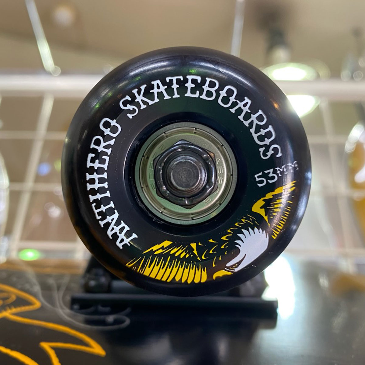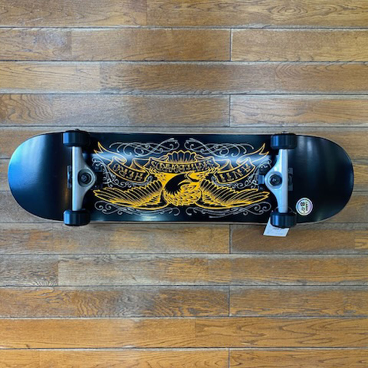 1995年のブランド発足以降、世に流されず変わらぬハードコアスタイルを貫き通すSF発スケートボードカンパニー"ANTI HERO"。 ボスのJulien Strangerを中心にSOTY受賞者Grant Taylor、Brian Anderson、Tony Trujilloの3名に加えRaney BeresやDaanなどの猛者が集う。 ANTIHERO(アンチヒーロー)人気のイーグル、ピンストライプデザイン。ストリートからパークまで幅広く使えるコンプリートです。これからスケートボード始める方におすすめです。